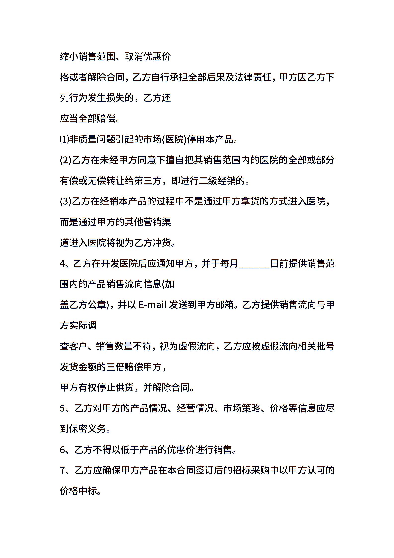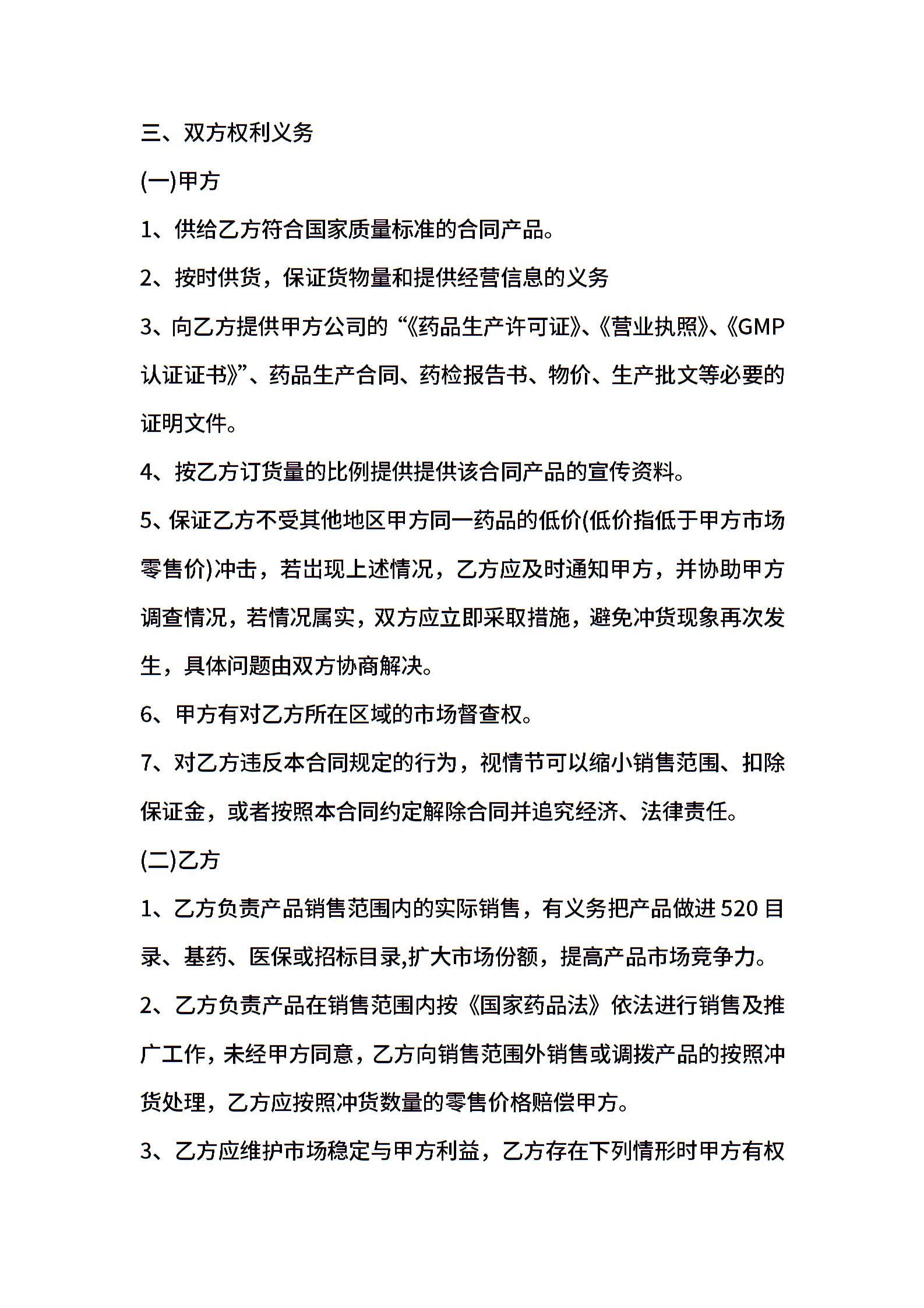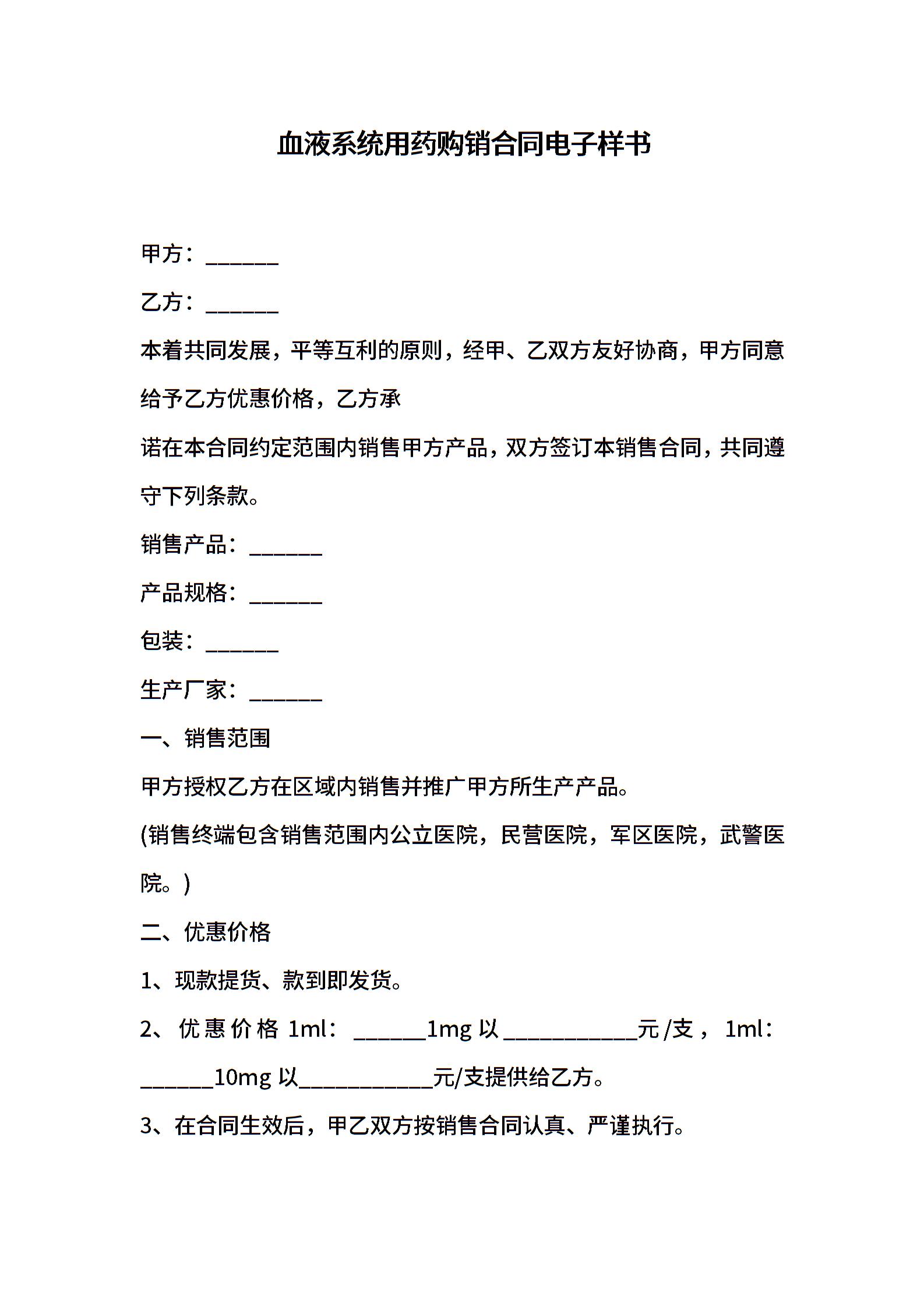 血液系统用药购销合同电子样书