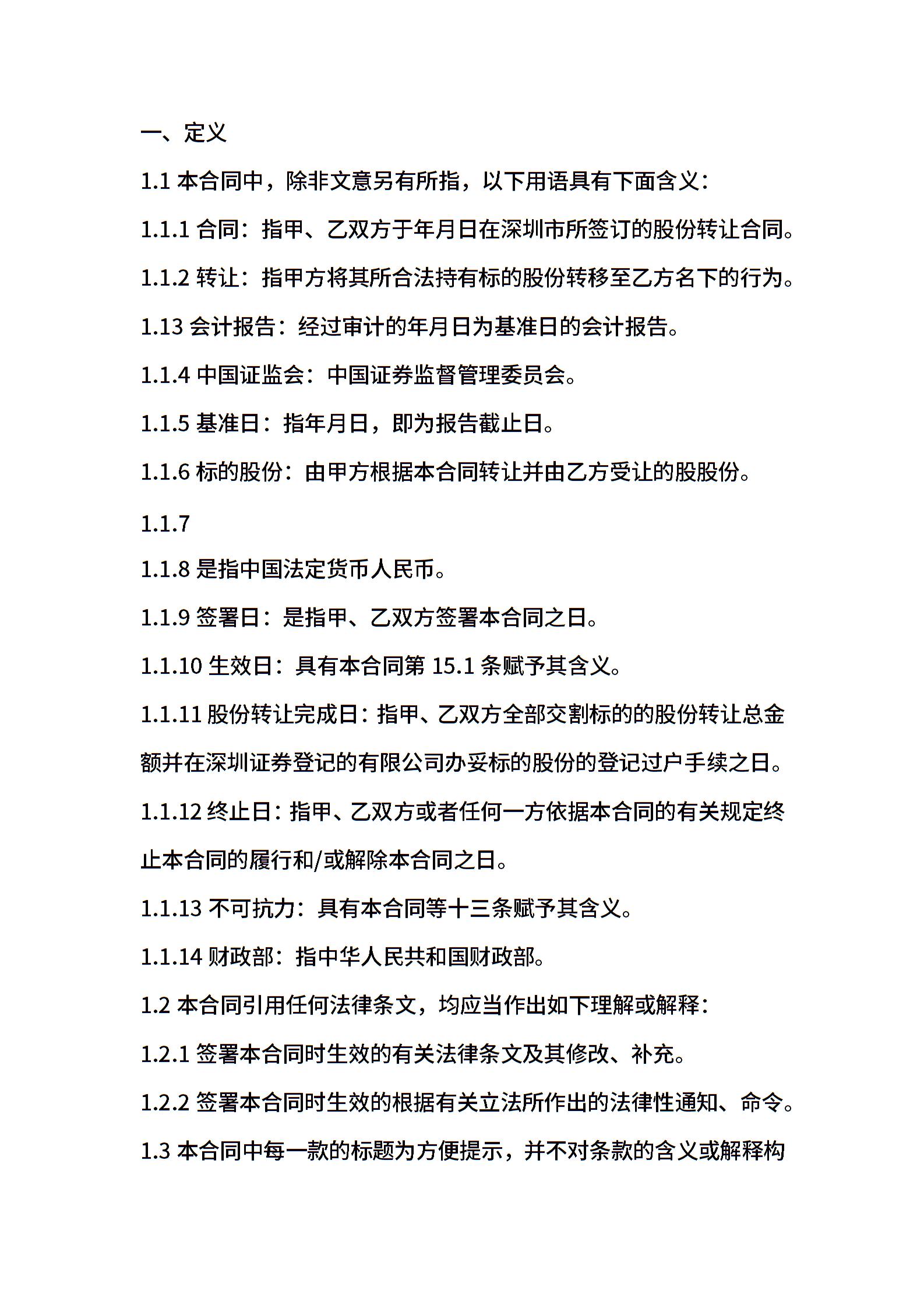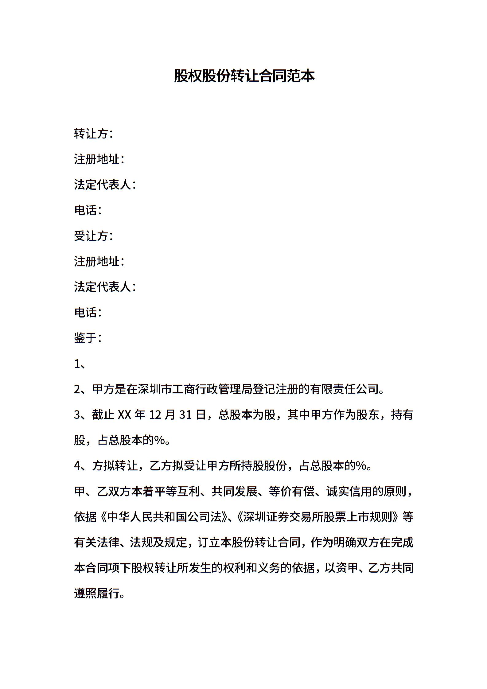 • 分类 股权转让协议