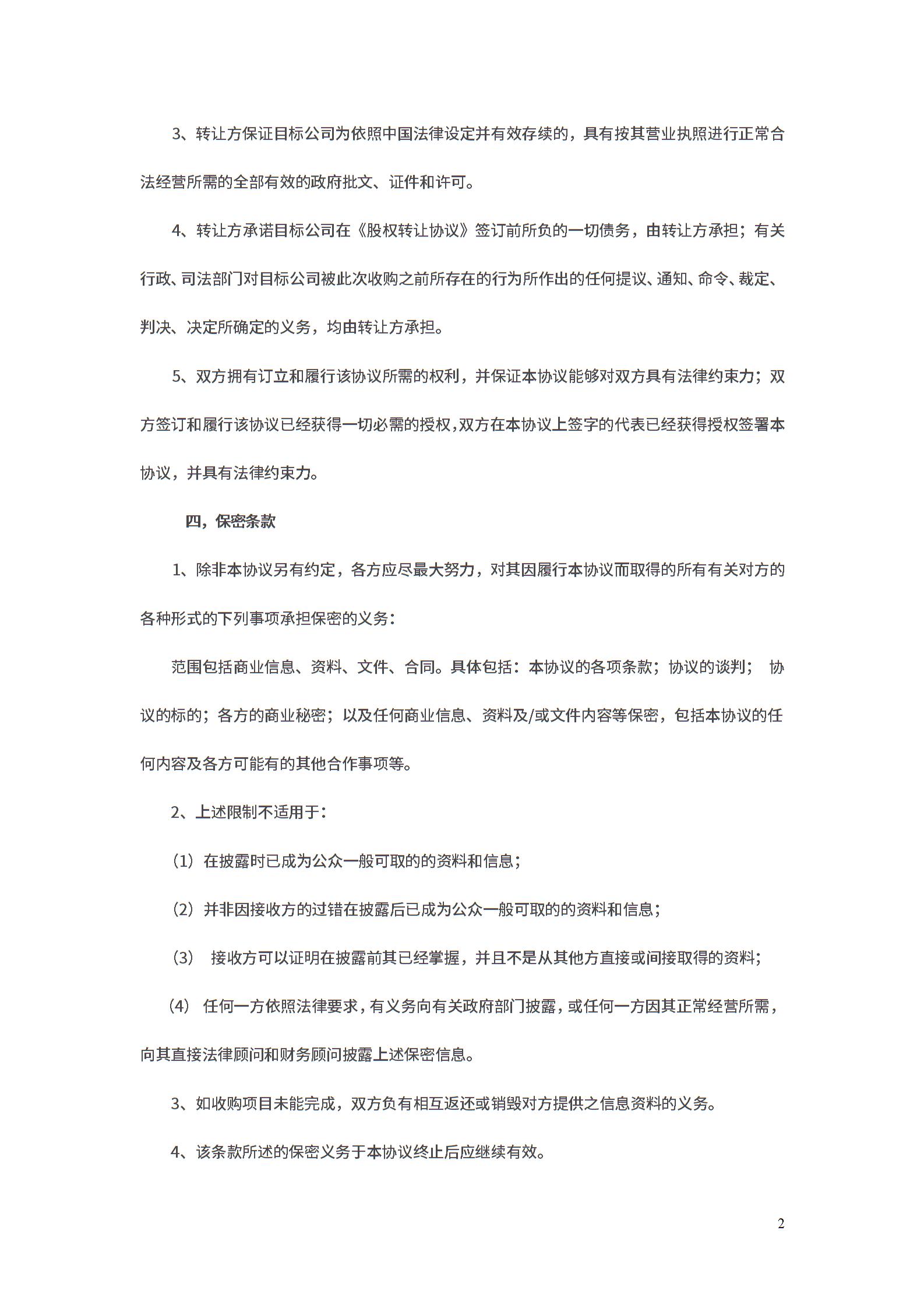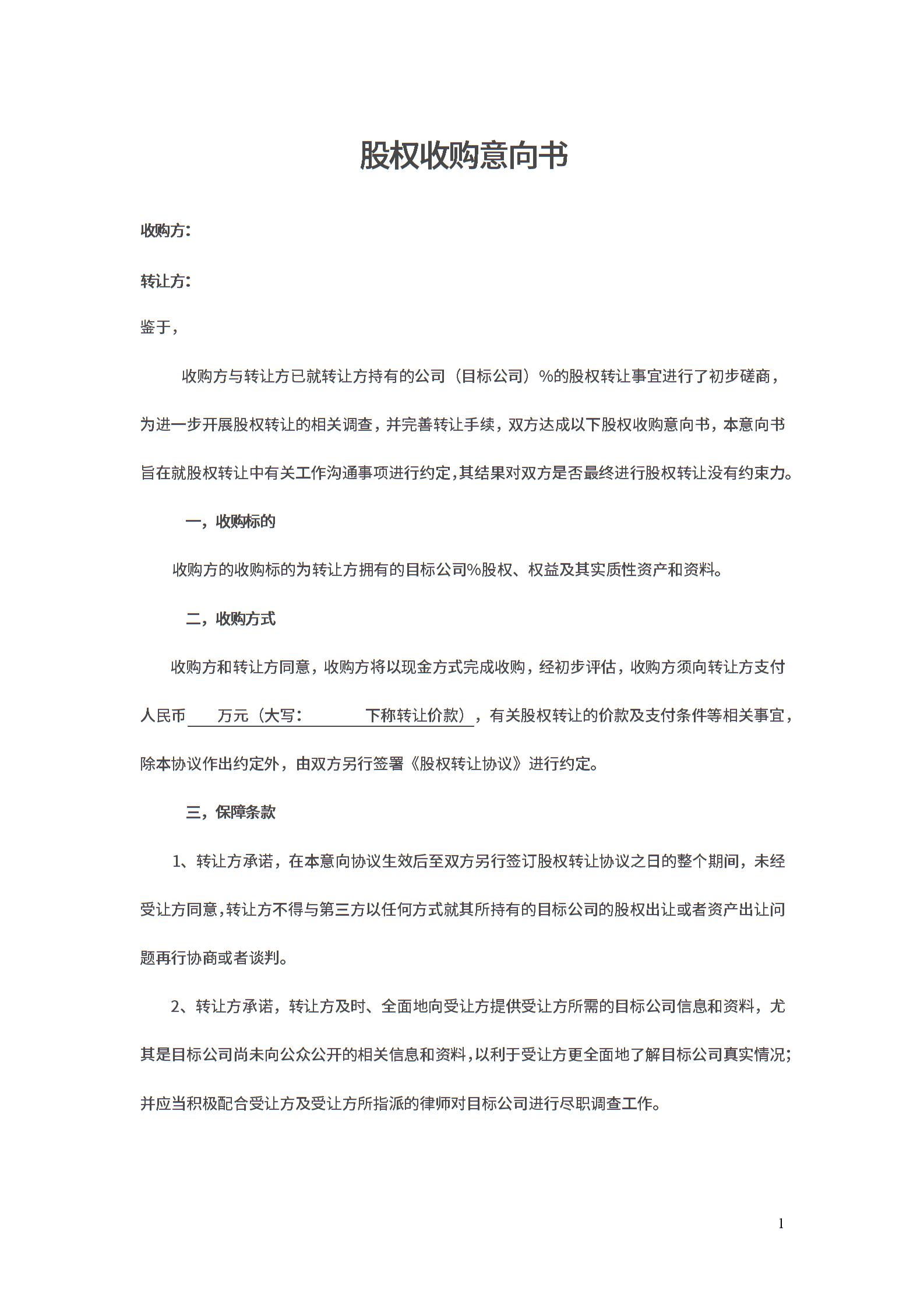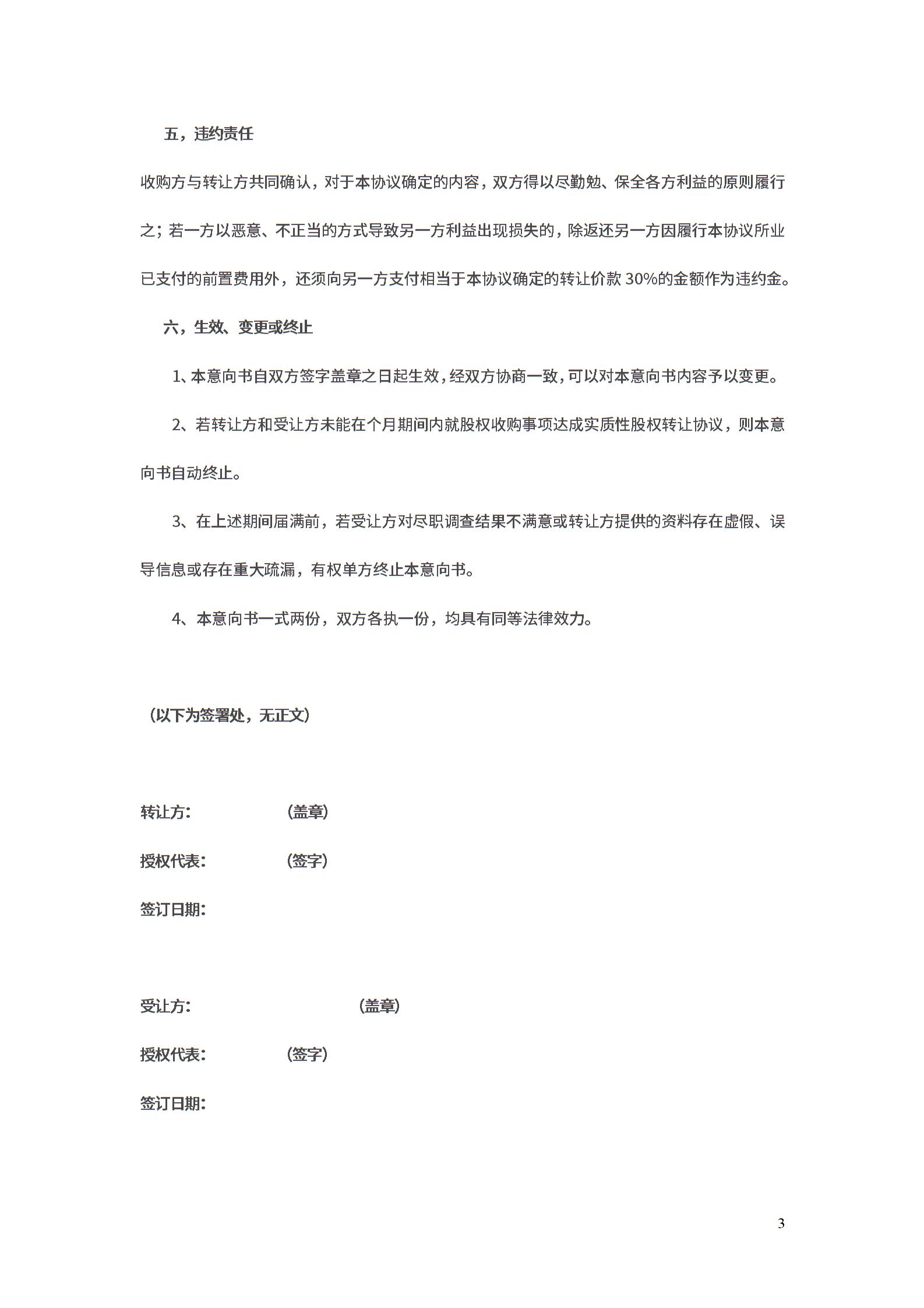 股权收购意向书