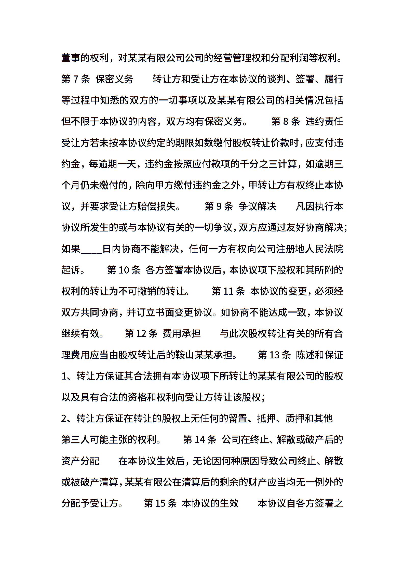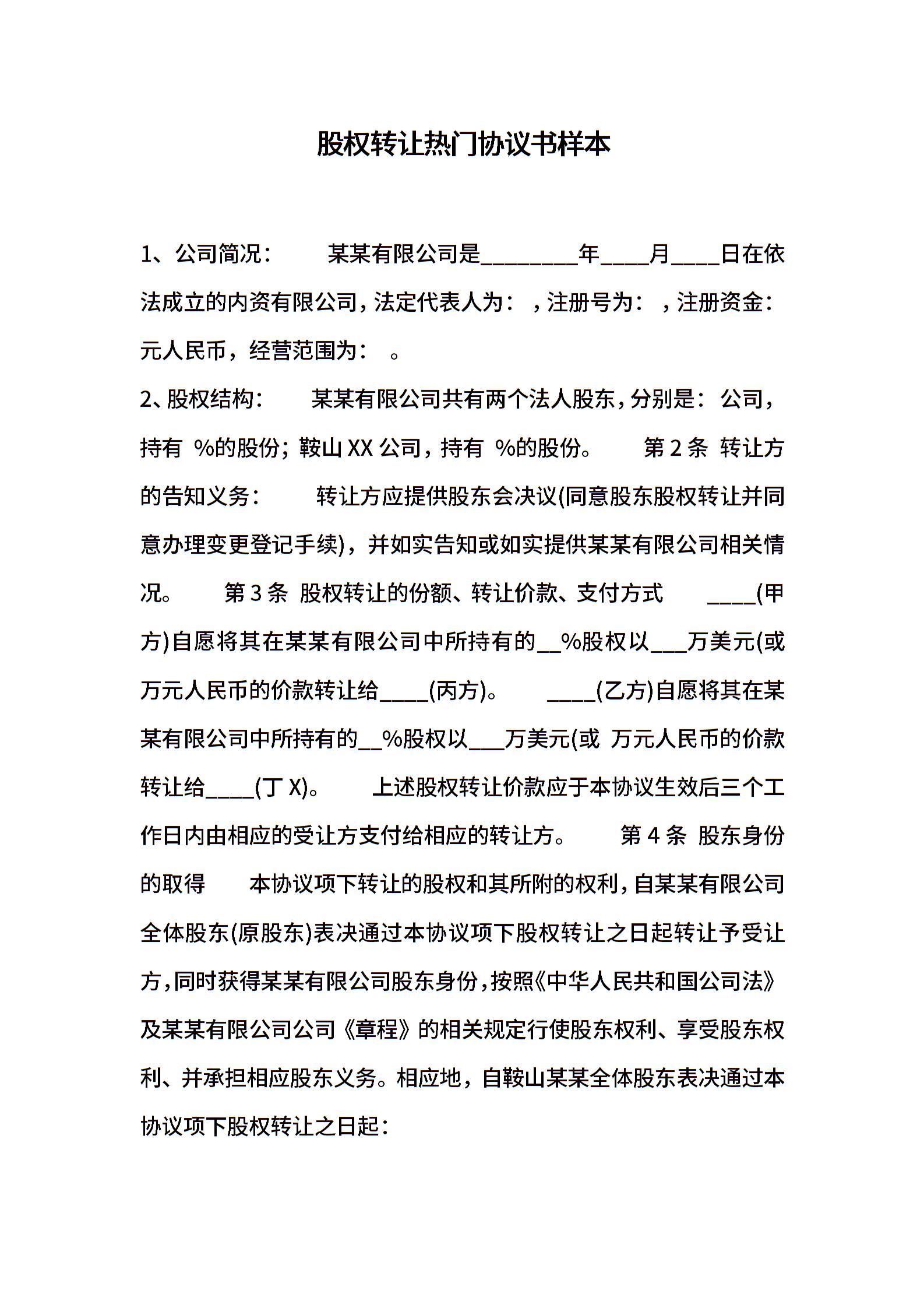 股权转让热门协议书样本