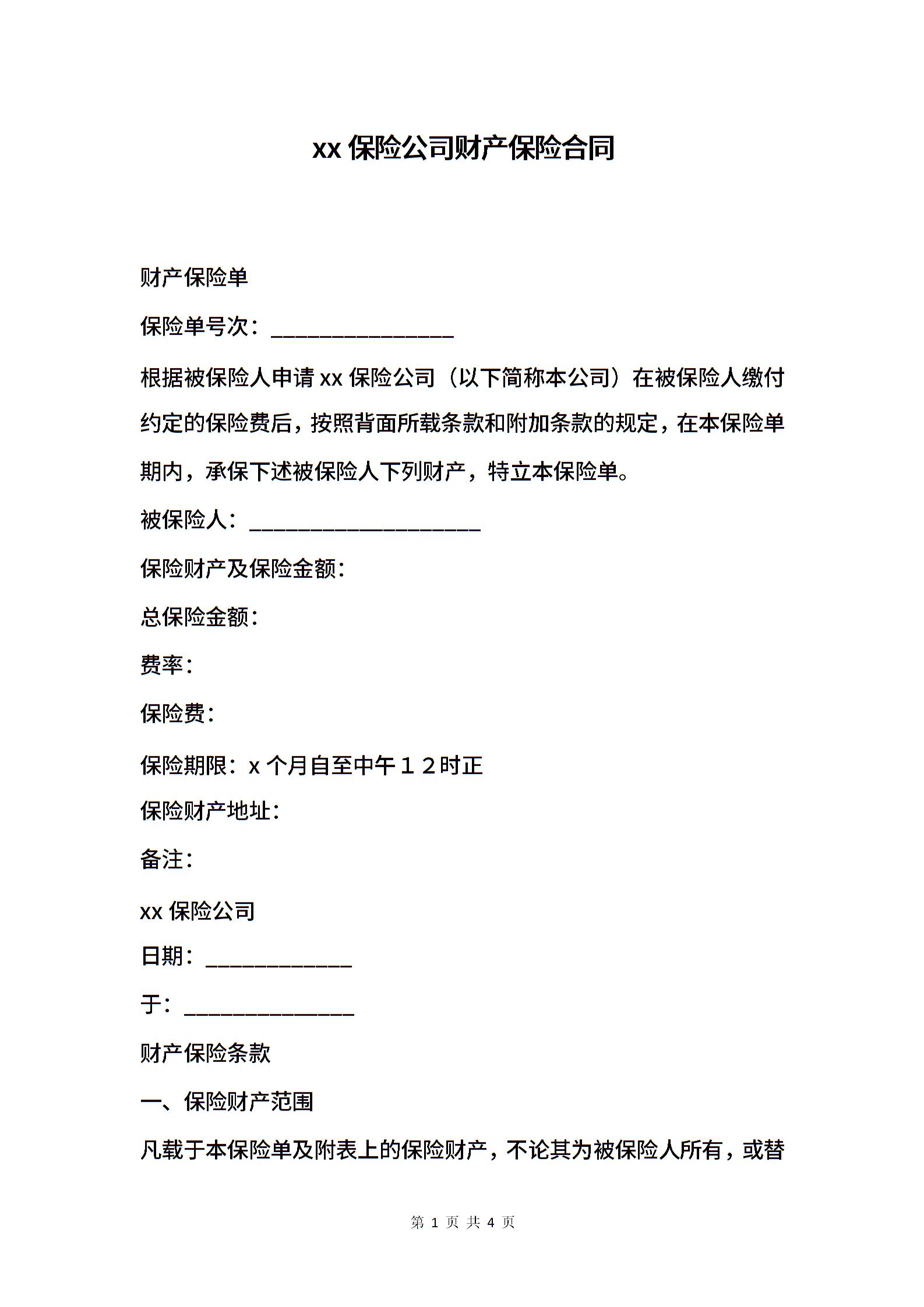 xx保险公司财产保险合同