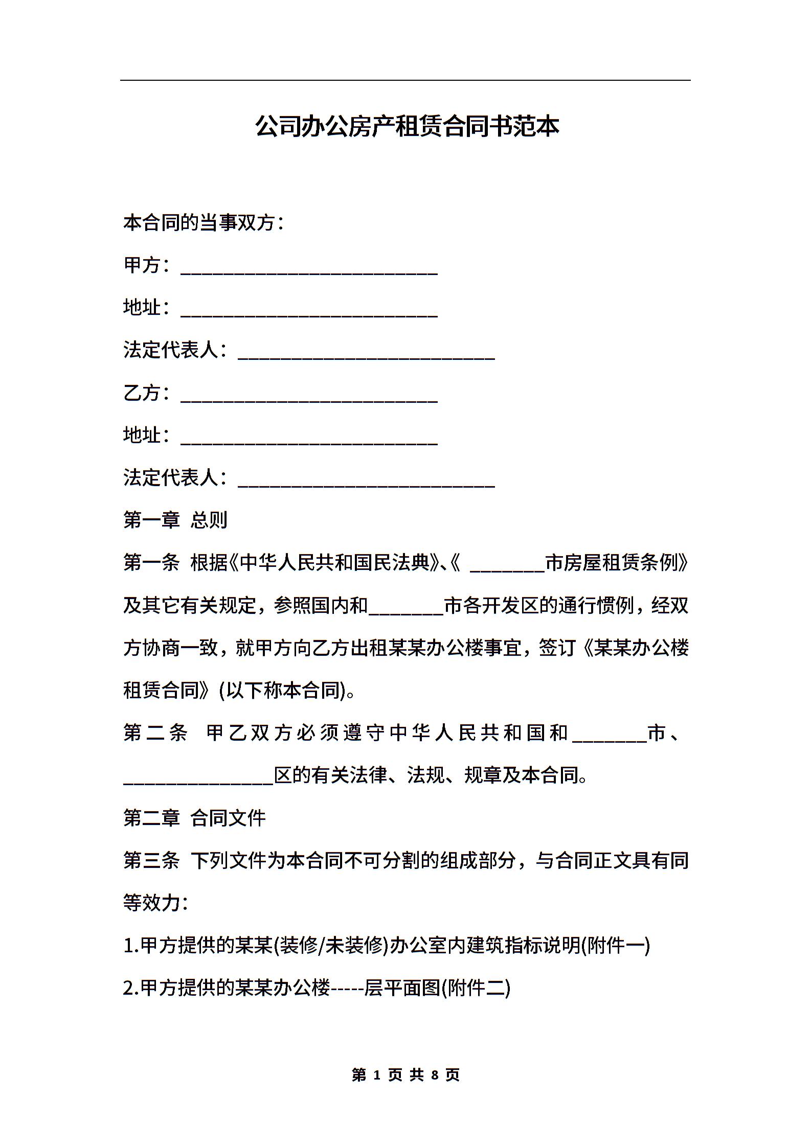 公司办公房产租赁合同书范本