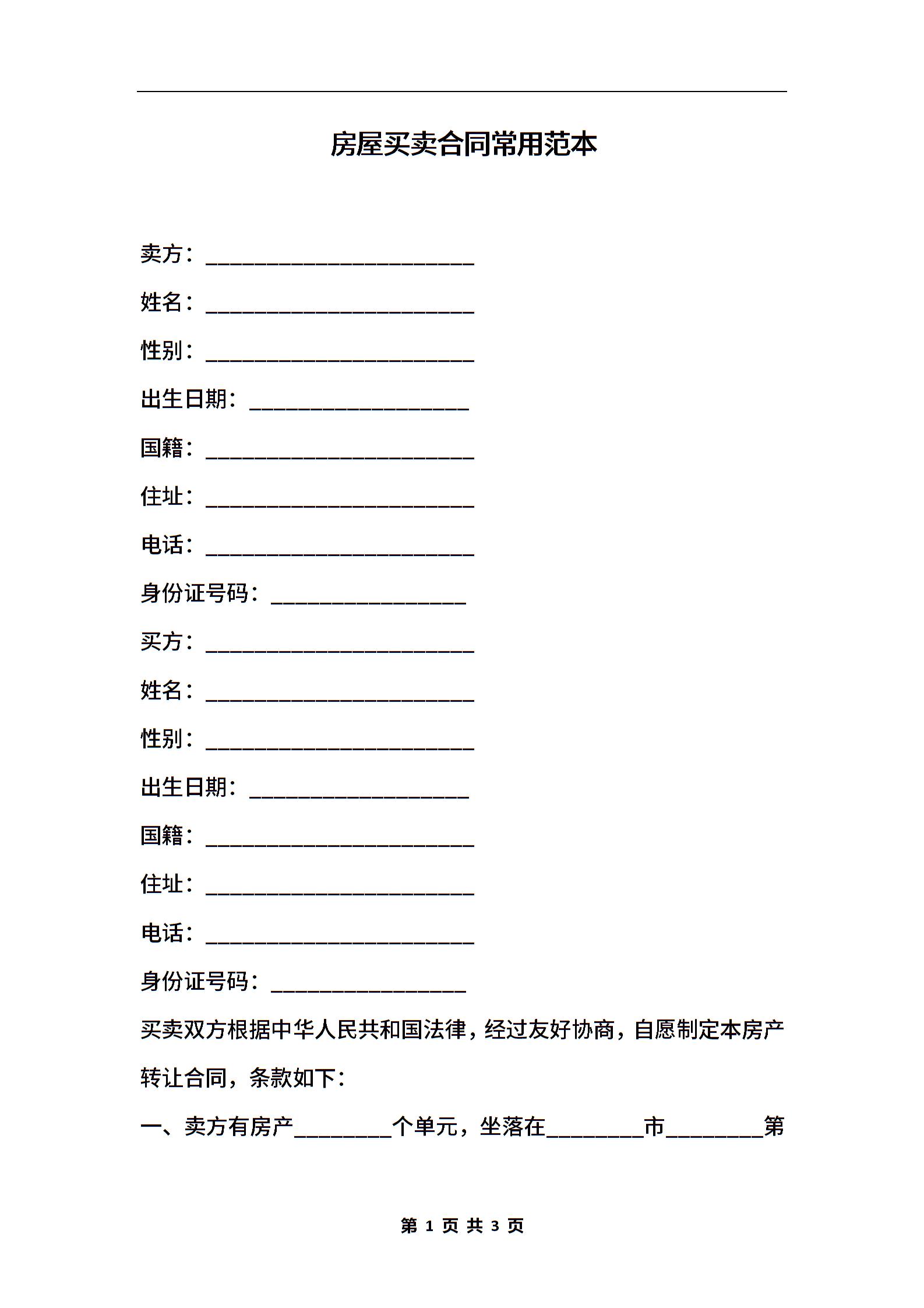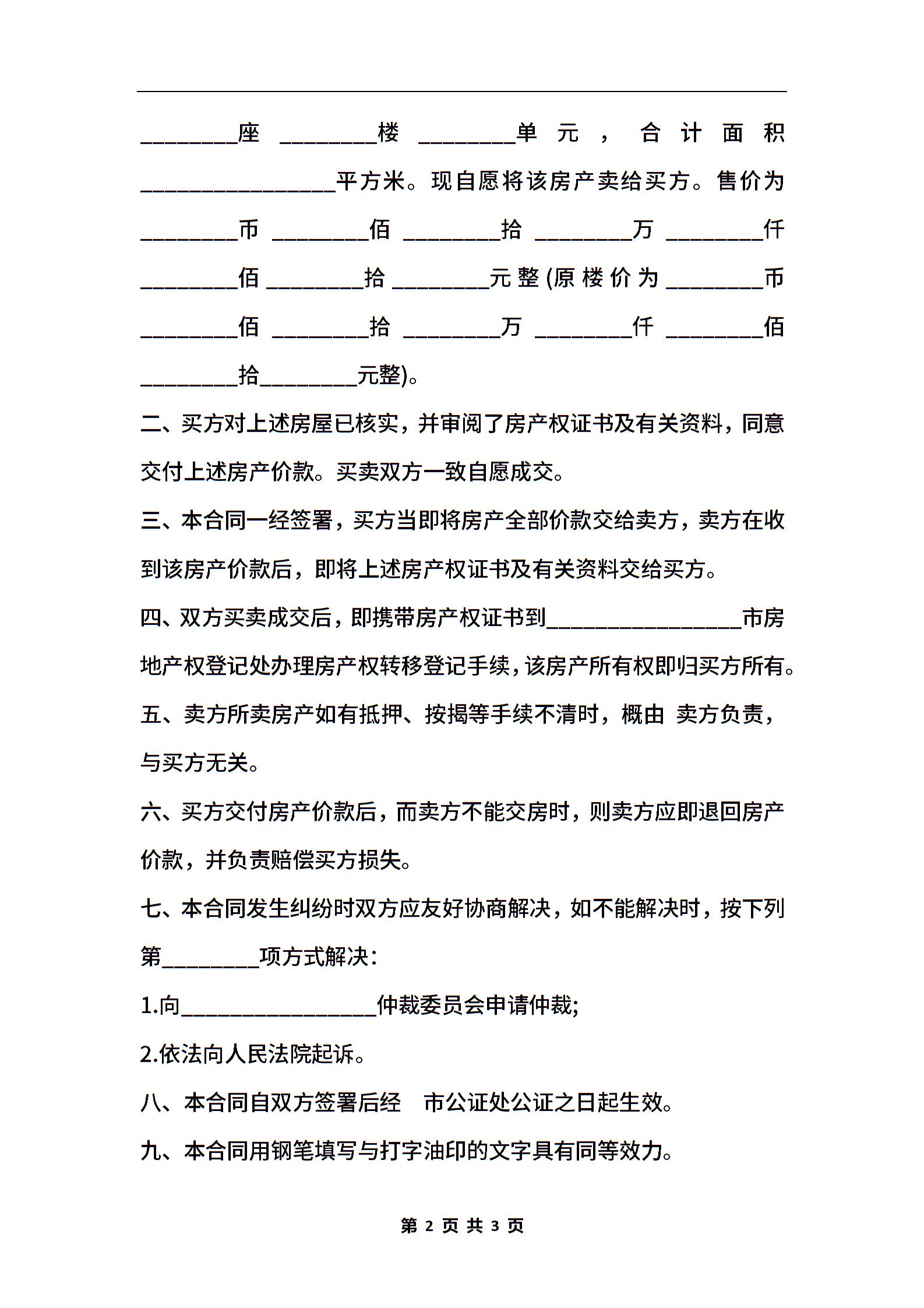 房屋买卖合同常用范本