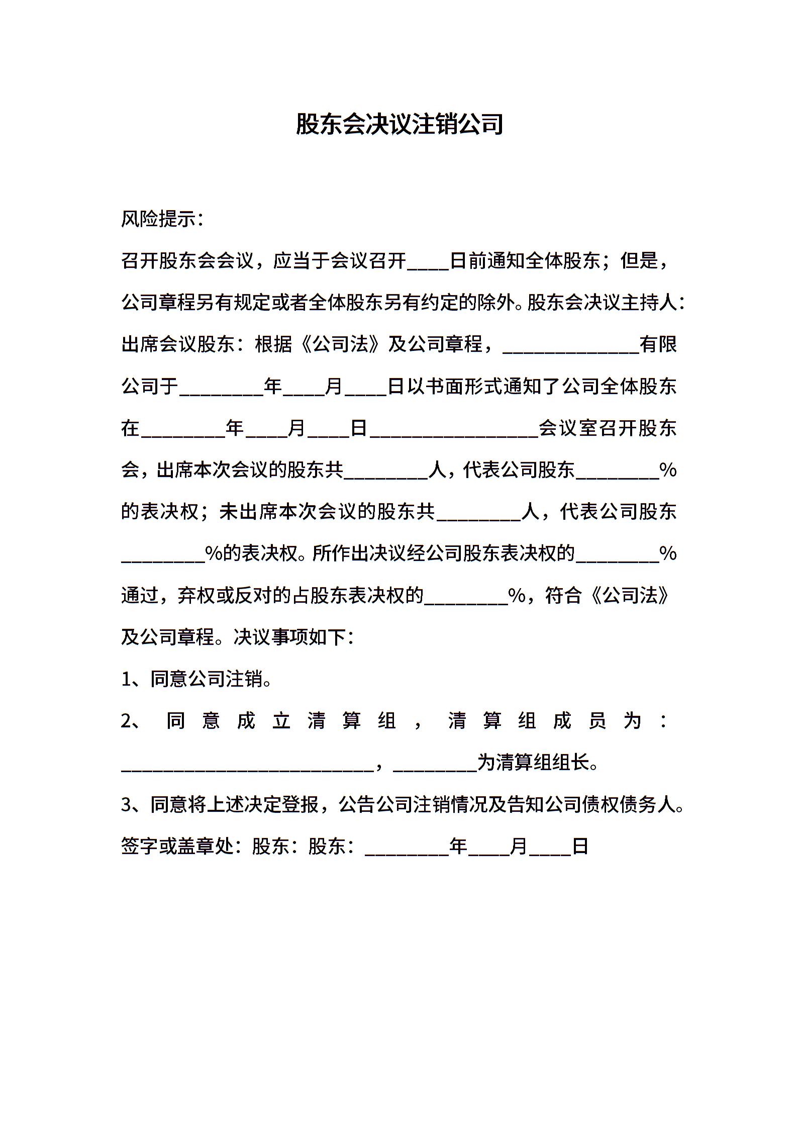 股东会决议注销公司 (2)
