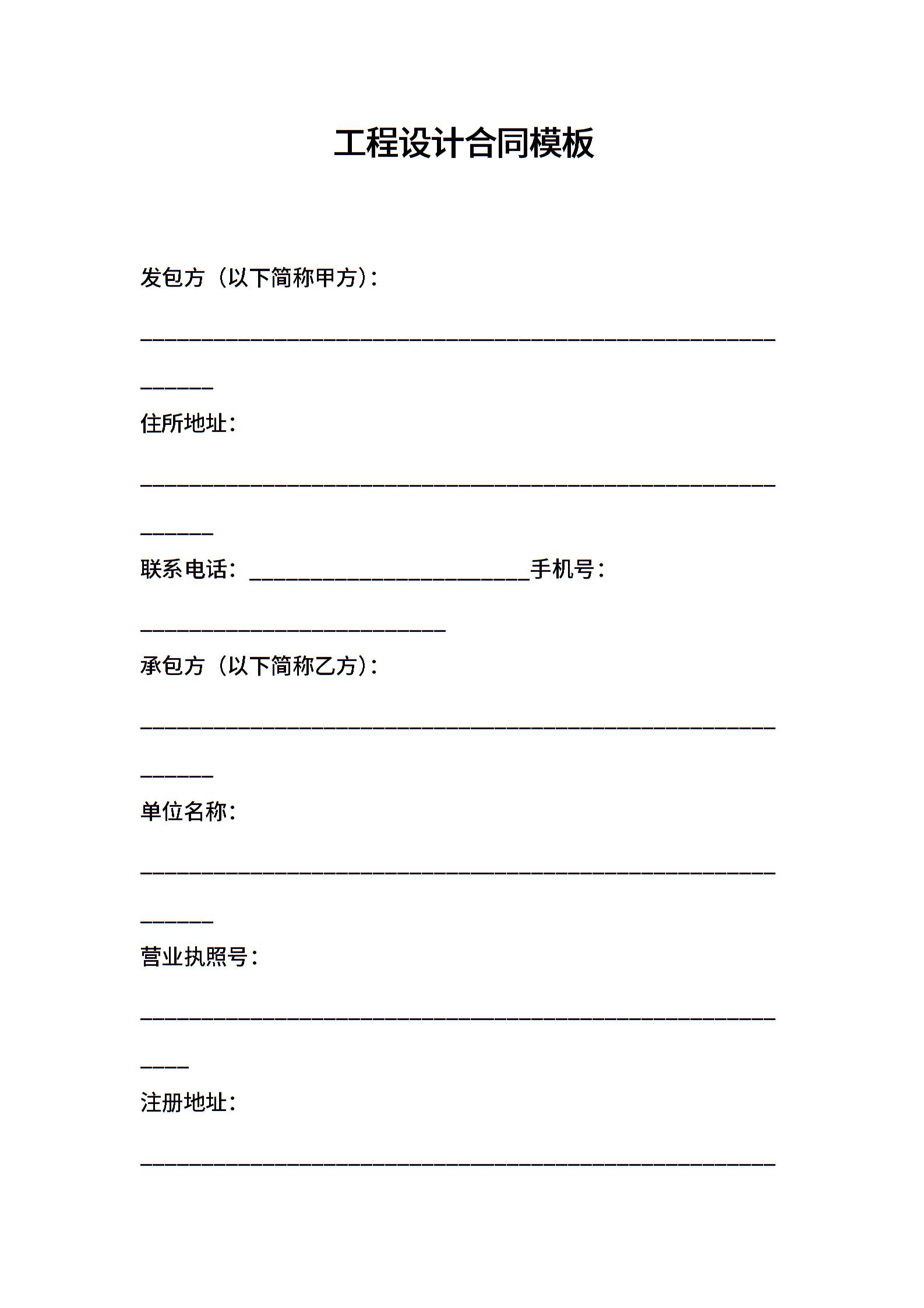 工程设计合同模板