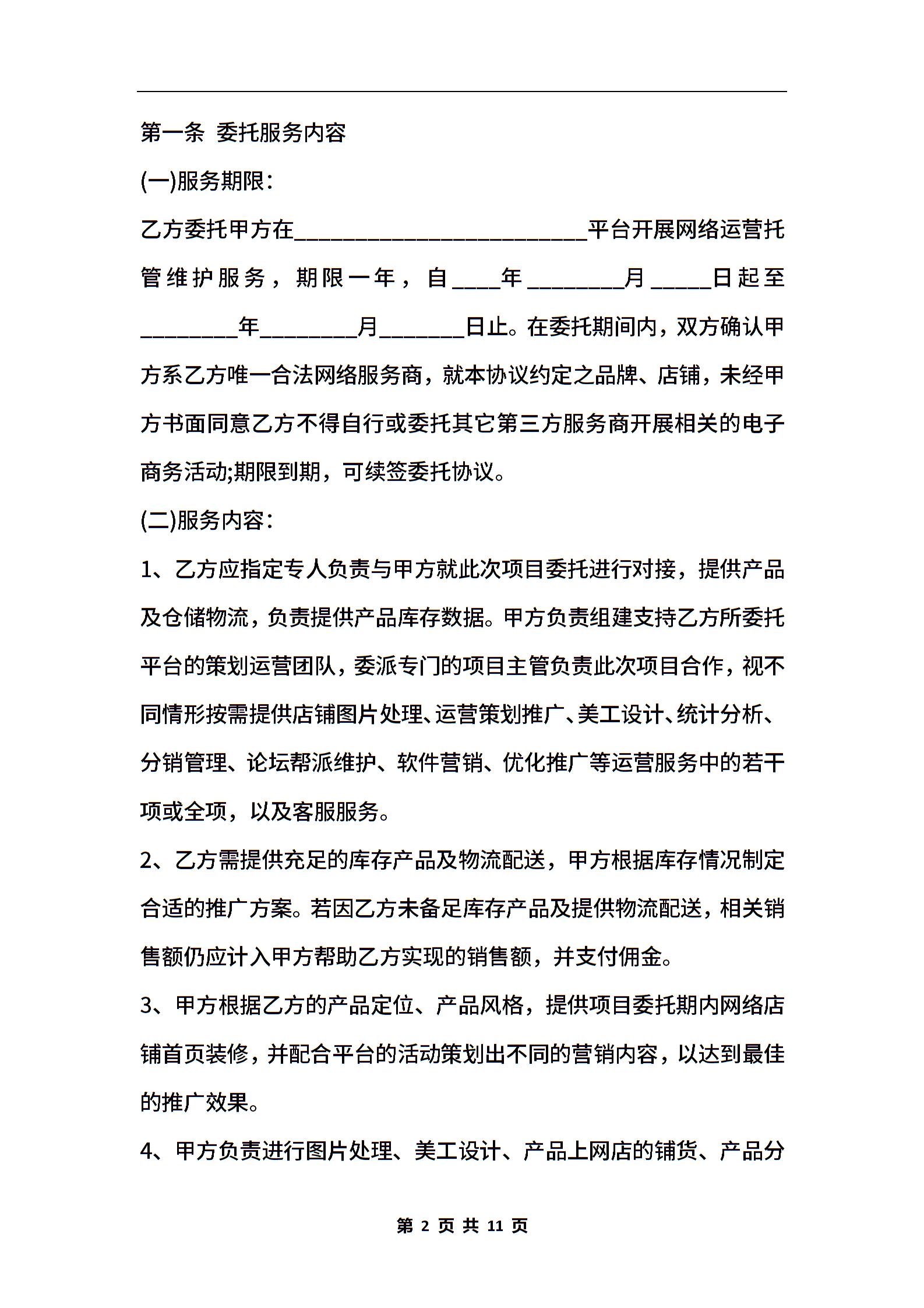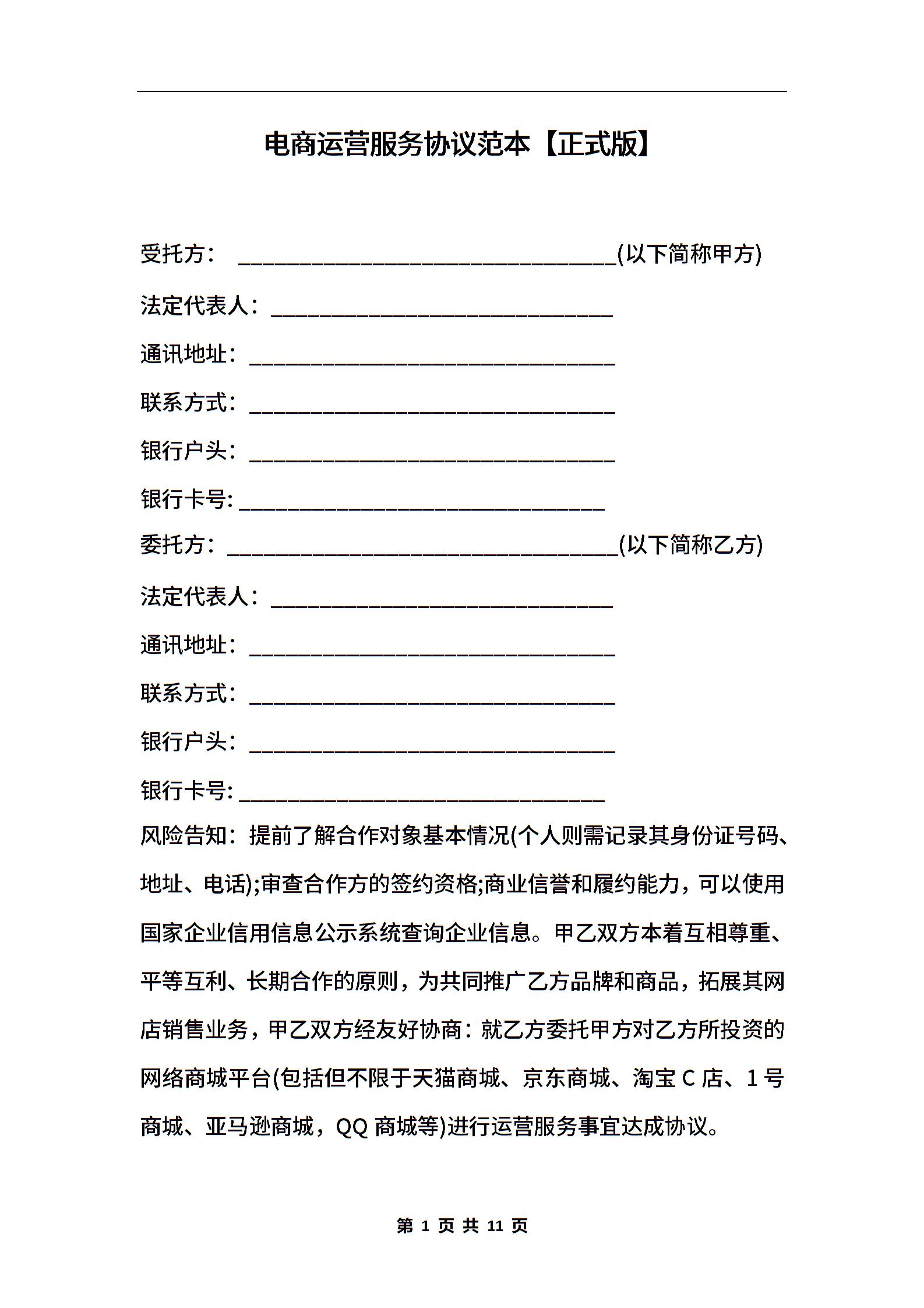 电商运营服务协议范本【正式版】