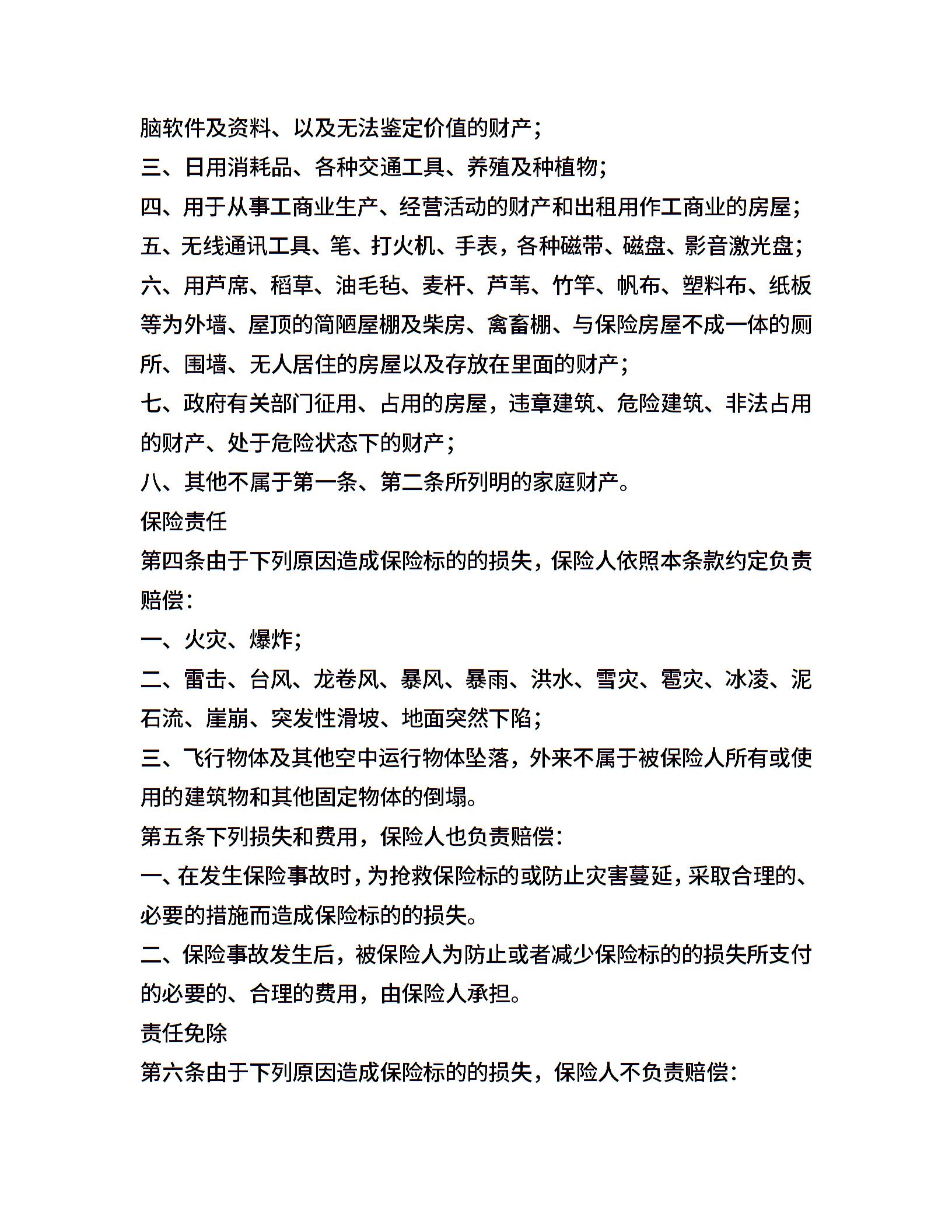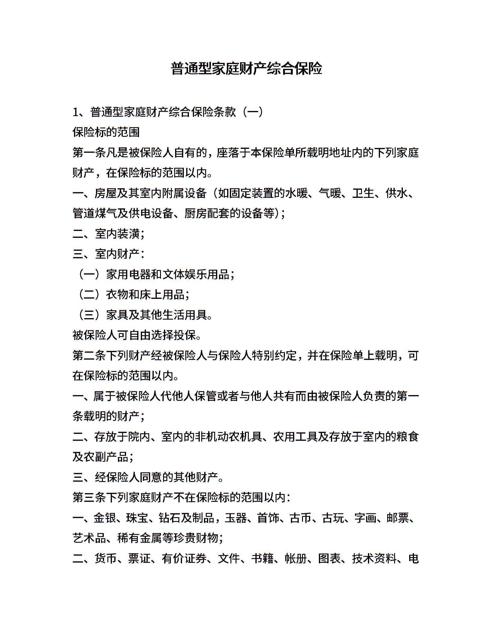 普通型家庭财产综合保险