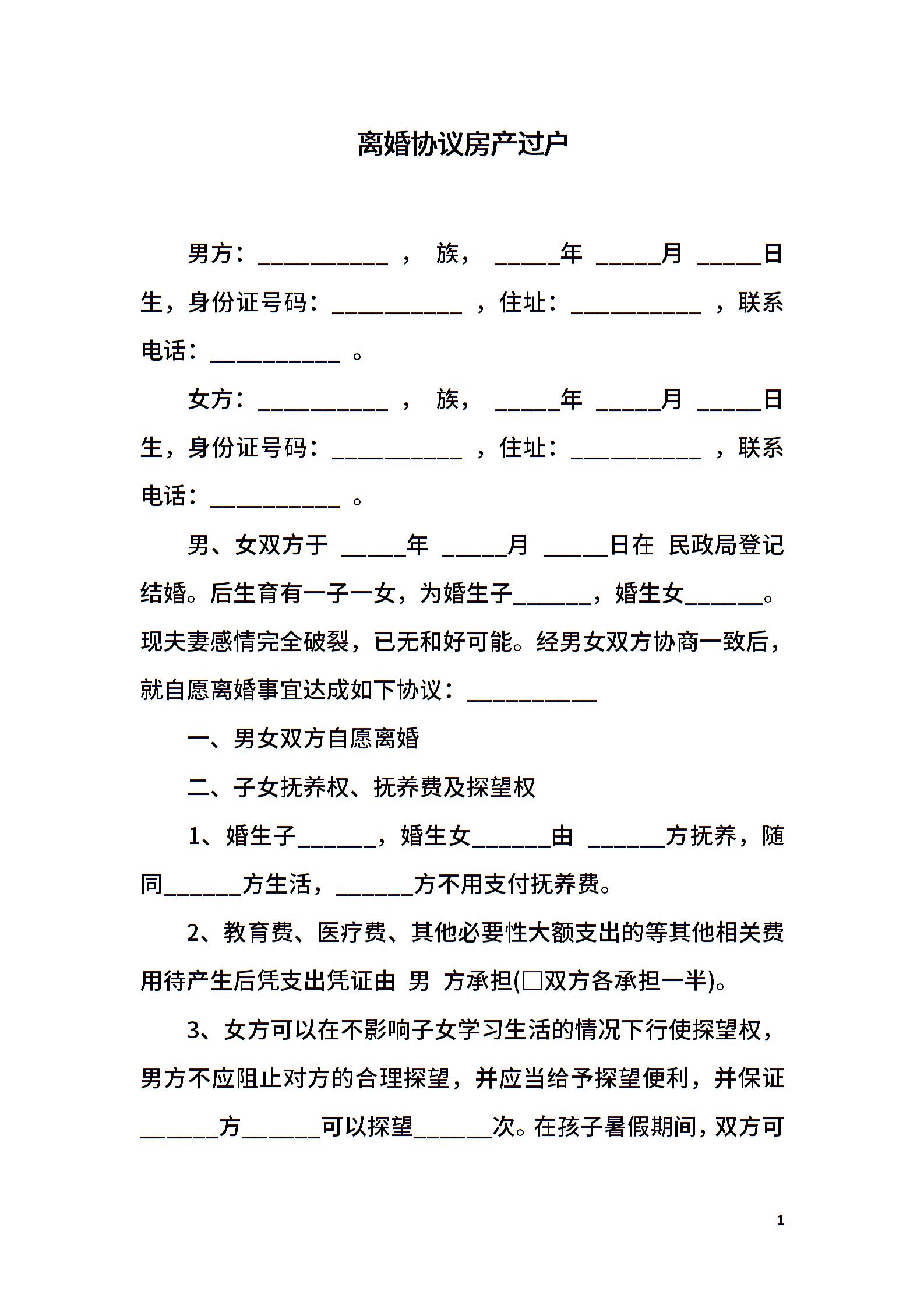 离婚协议房产过户