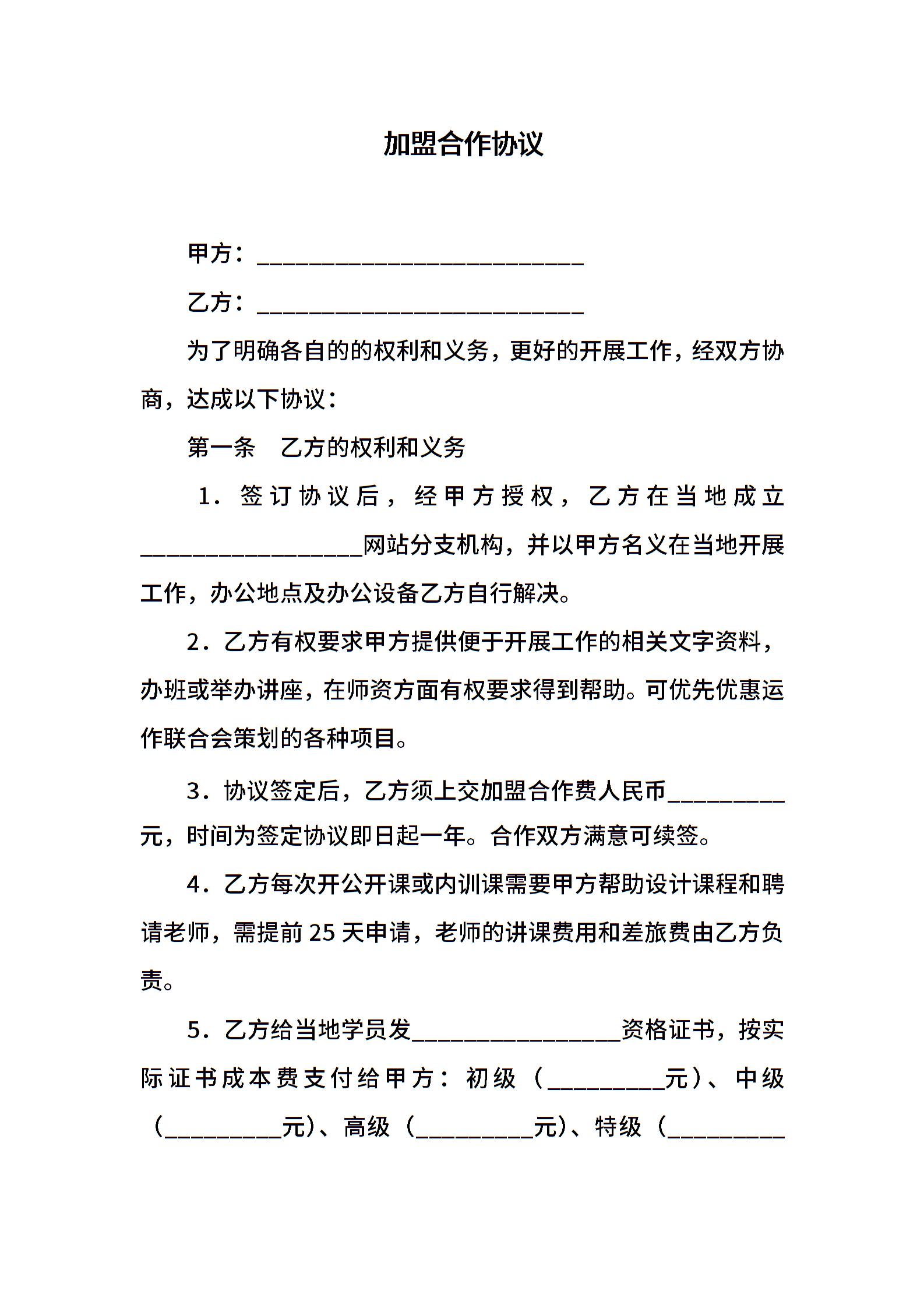 当前位置:量子办公 > 合同模板 > 合作合同 >