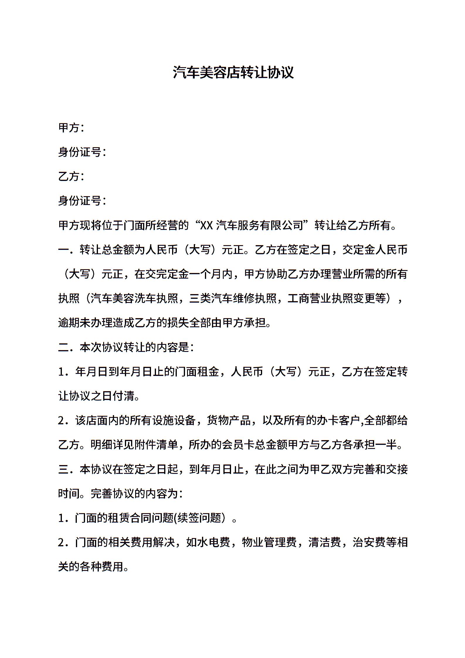 汽车美容店转让合同