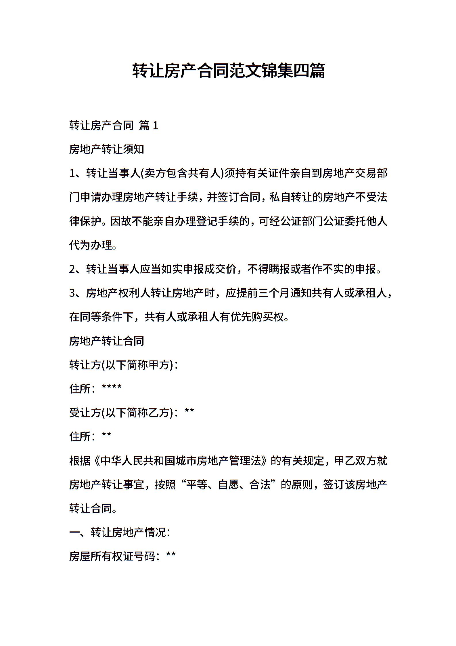 转让房产合同范文锦集四篇