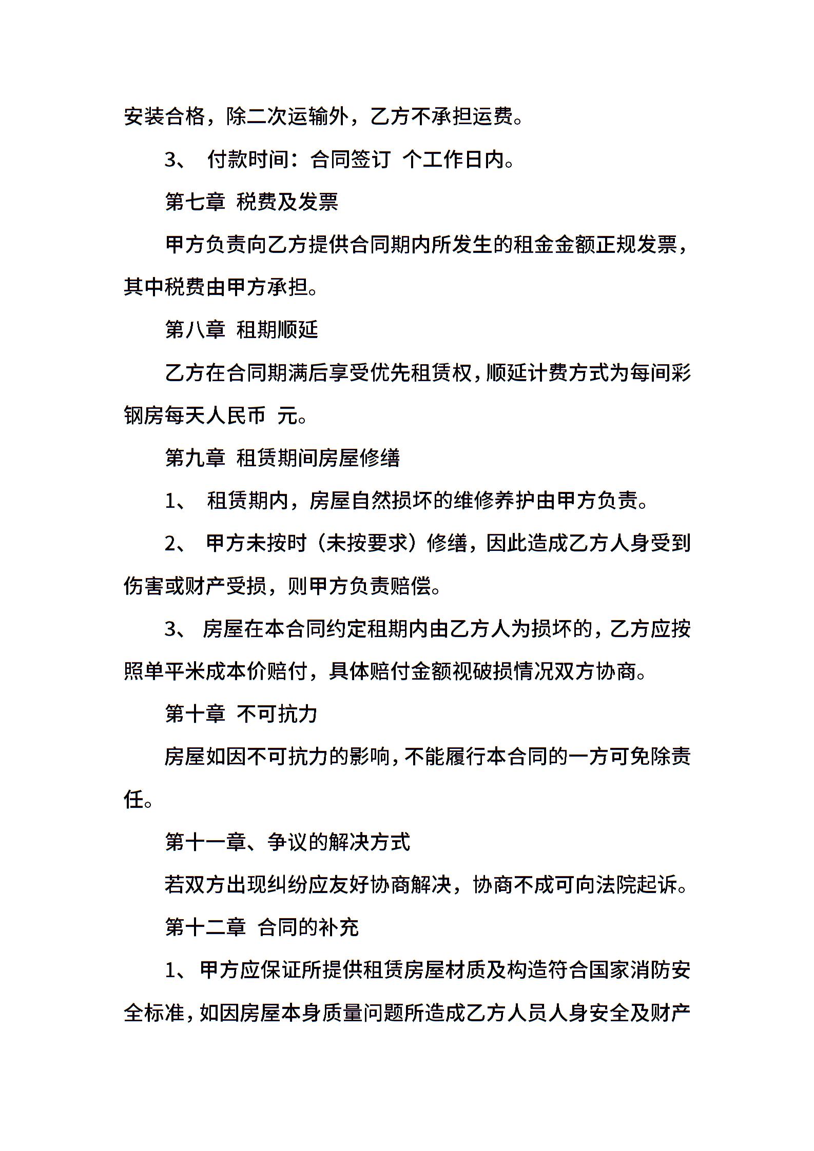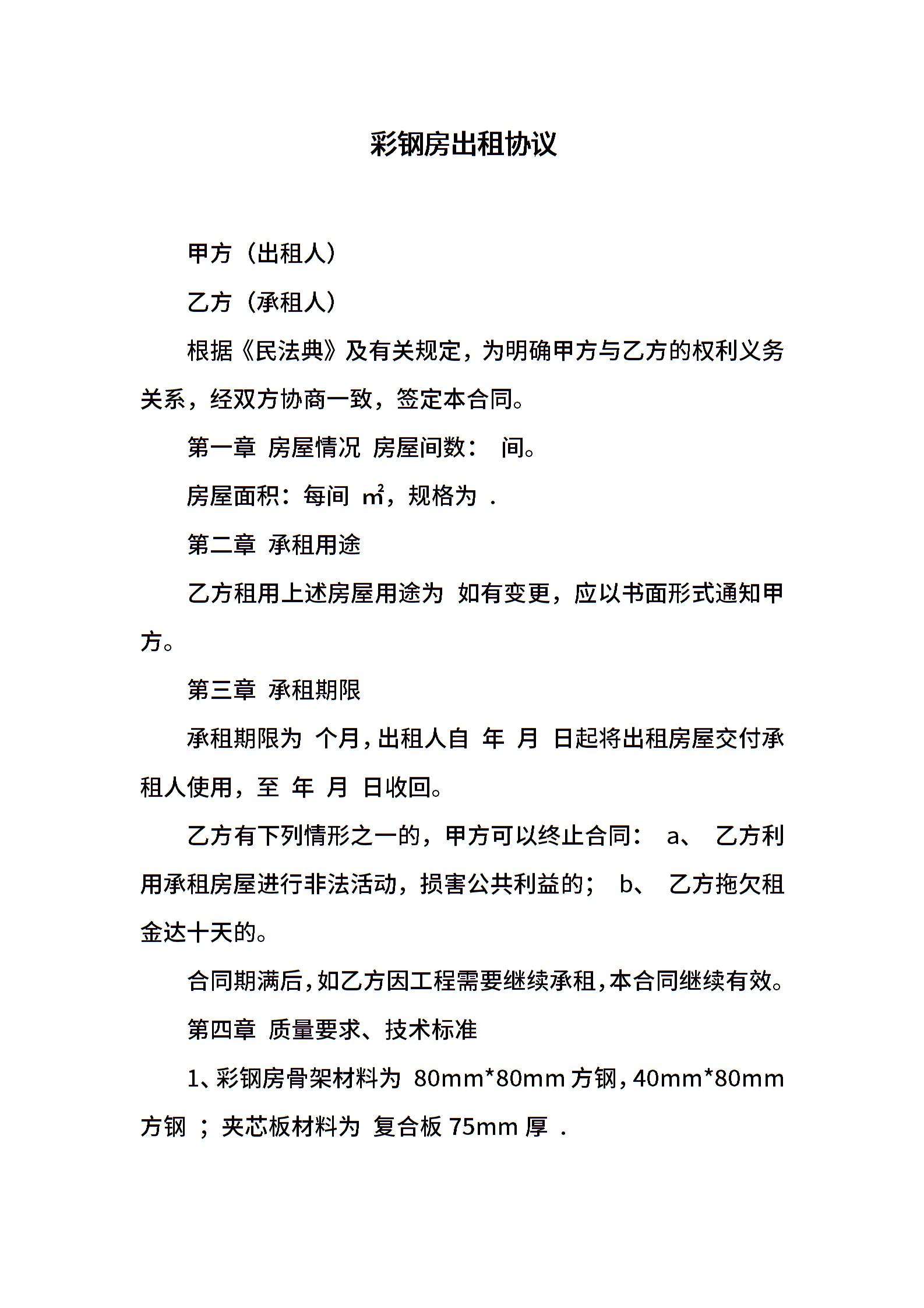 彩钢房出租协议