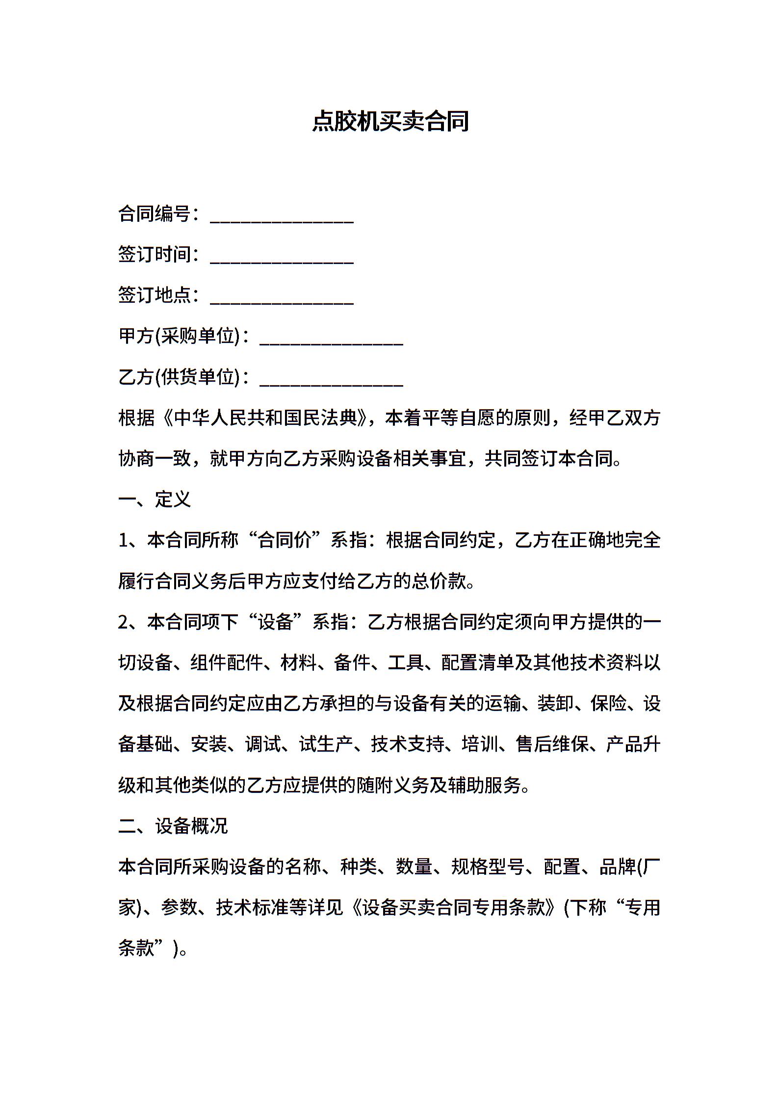 点胶机买卖合同