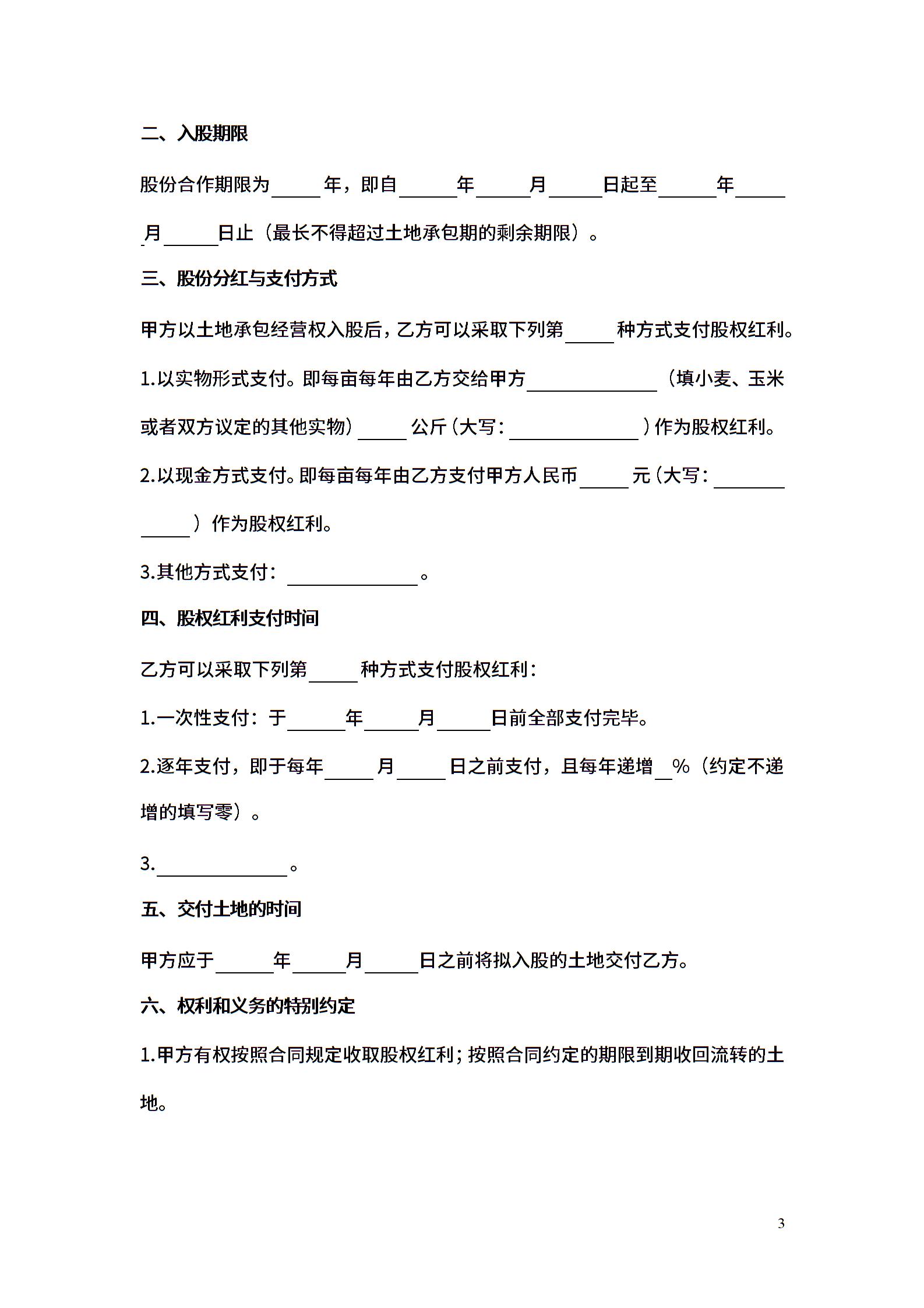 山东省农村土地承包经营权入股(股份合作)合同协议书范本