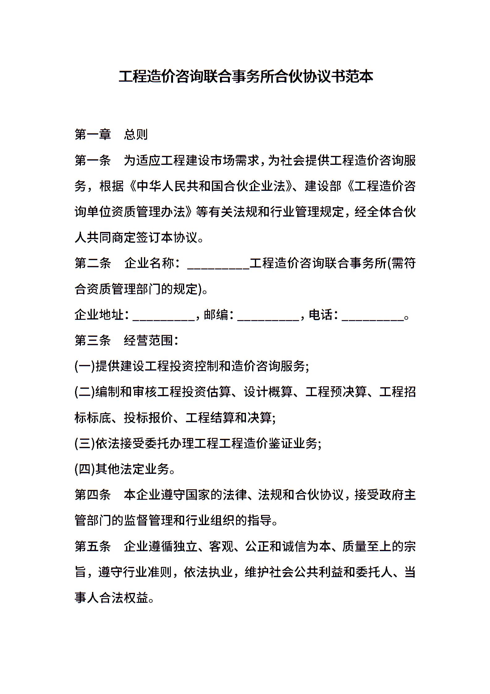 工程造价咨询联合事务所合伙协议书范本