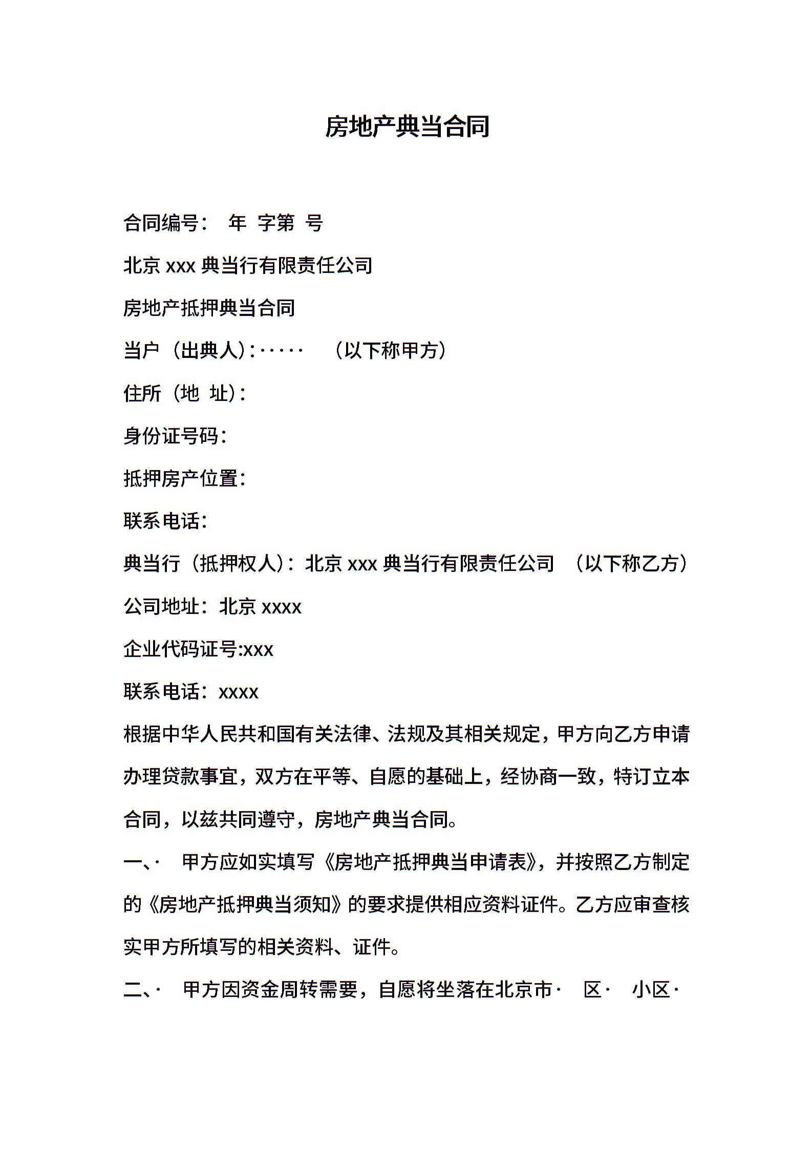 当前位置:量子办公 > 合同模板 > 典当合同 >