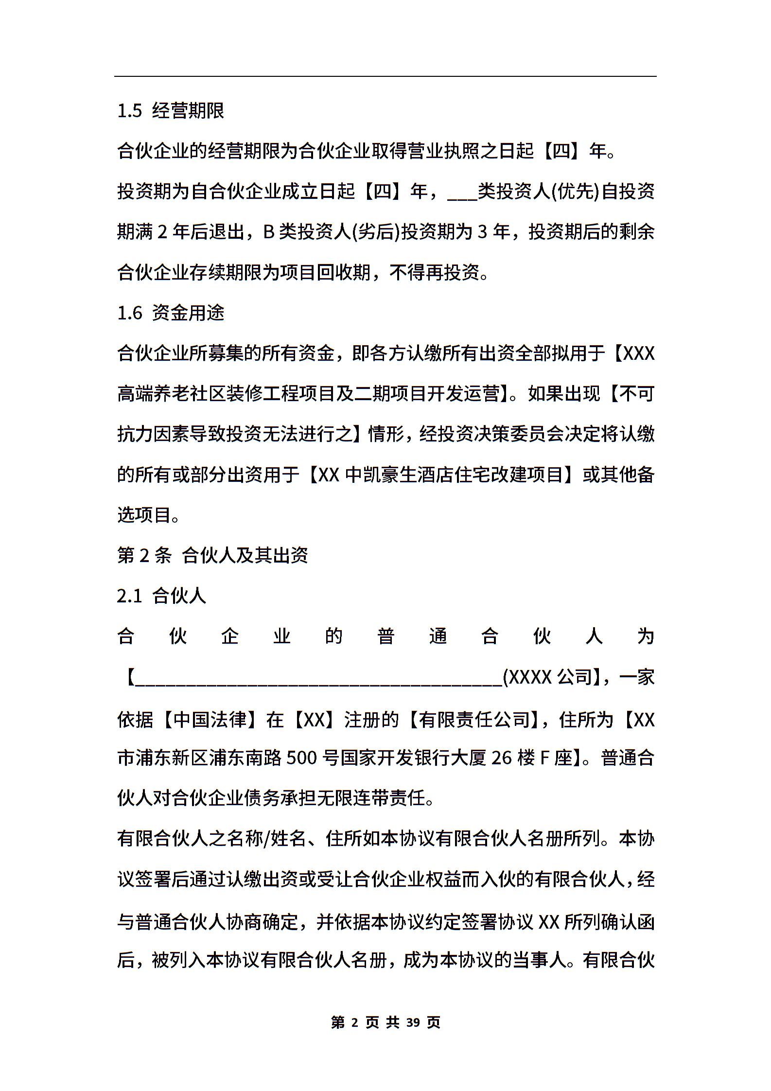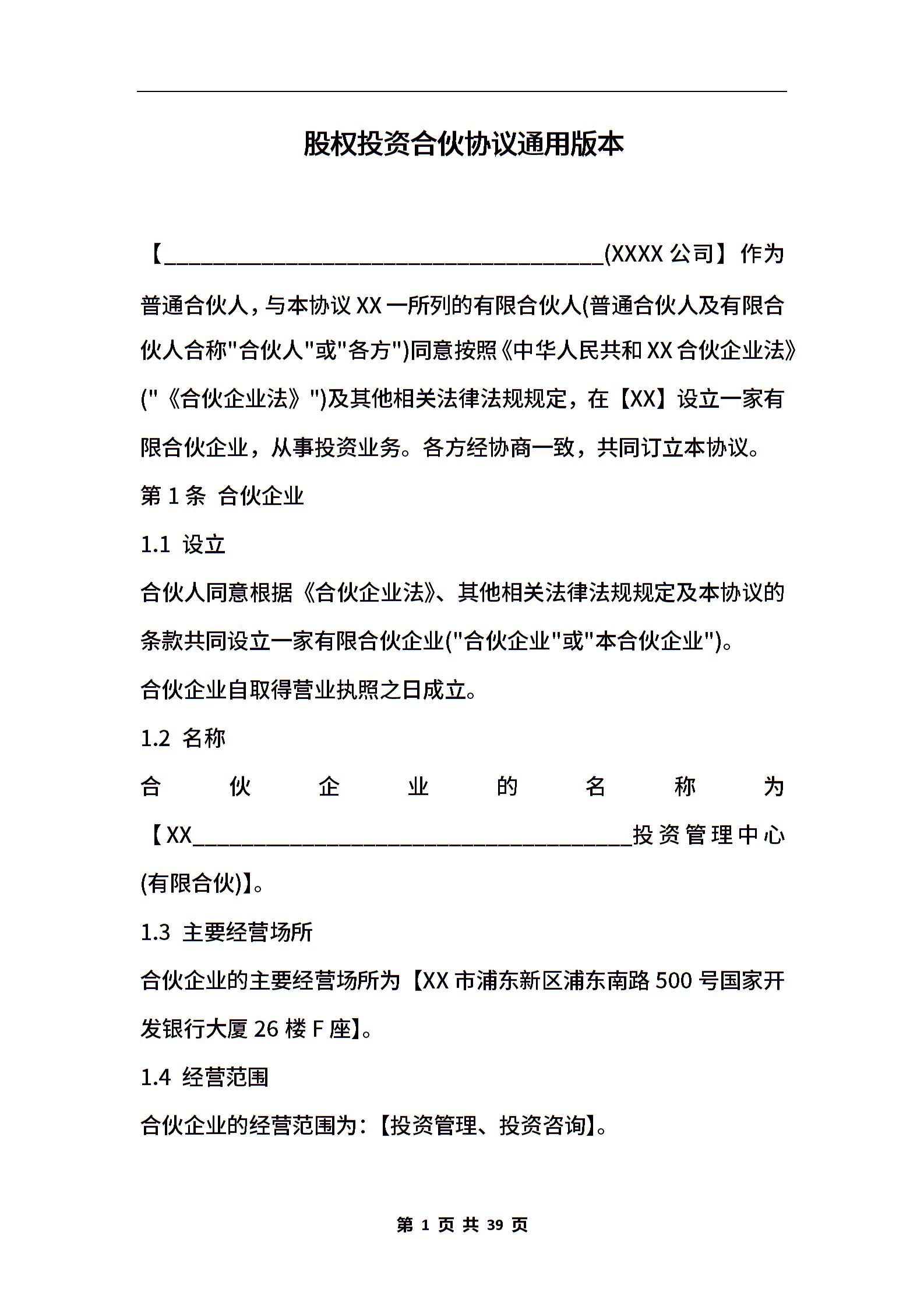 股权投资合伙协议通用版本