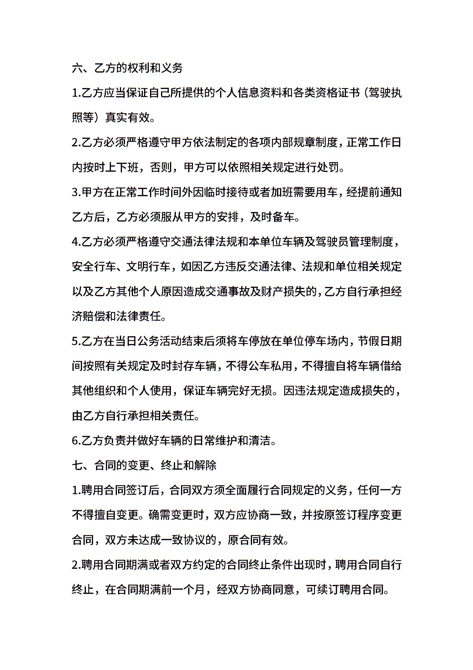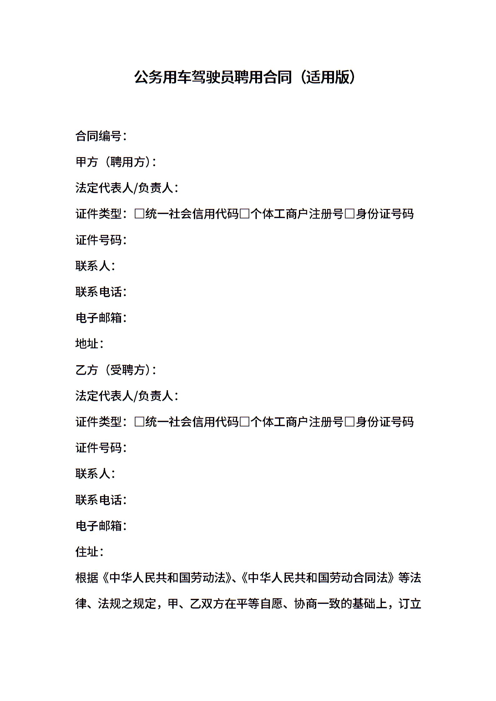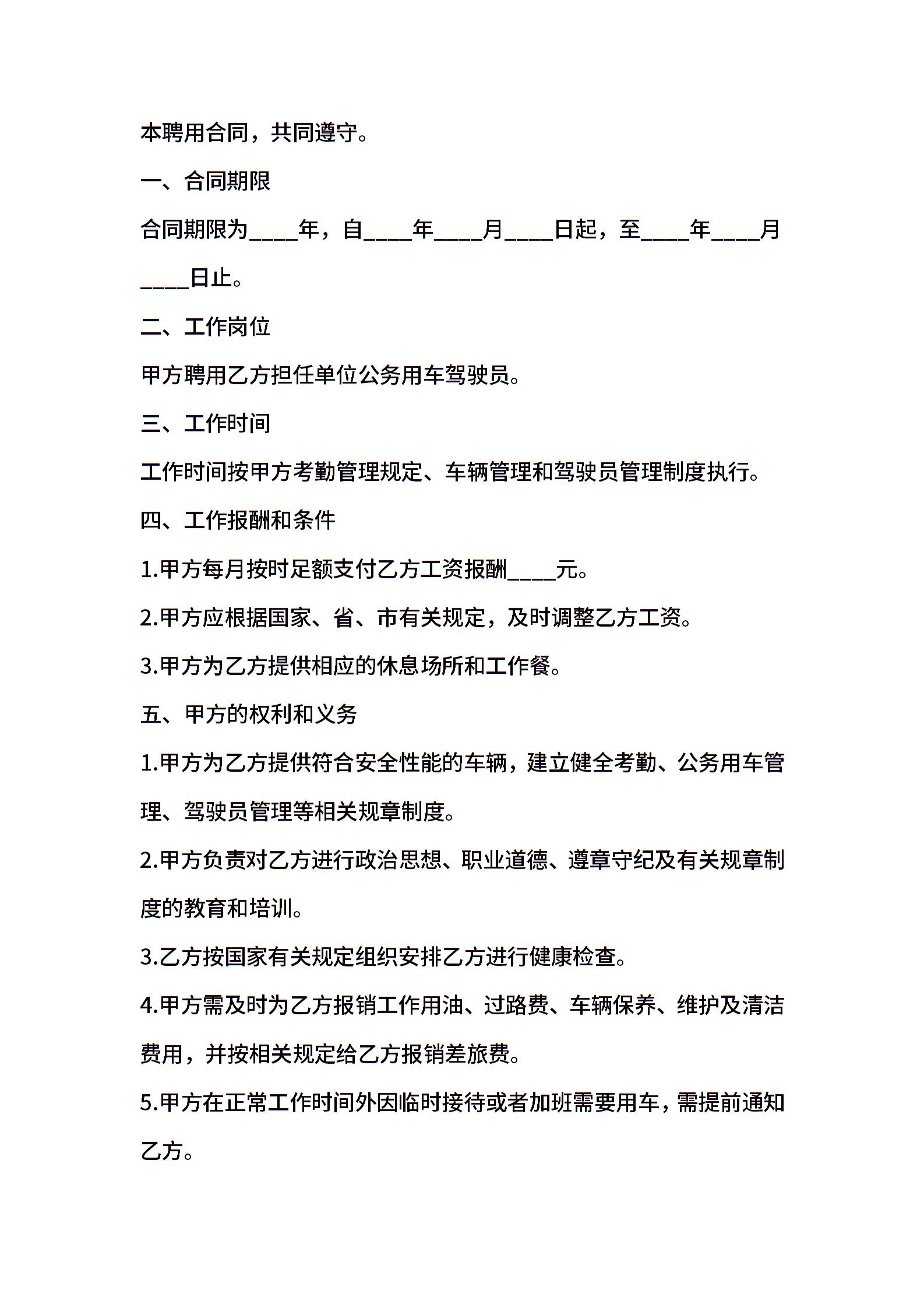 公务用车驾驶员聘用合同(适用版)