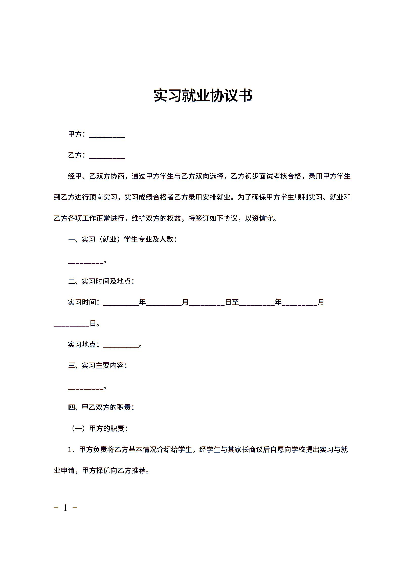实习就业协议书范文