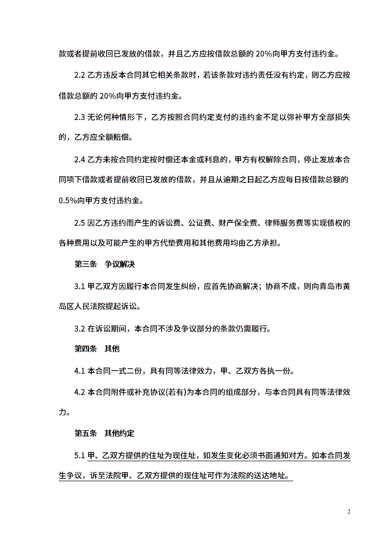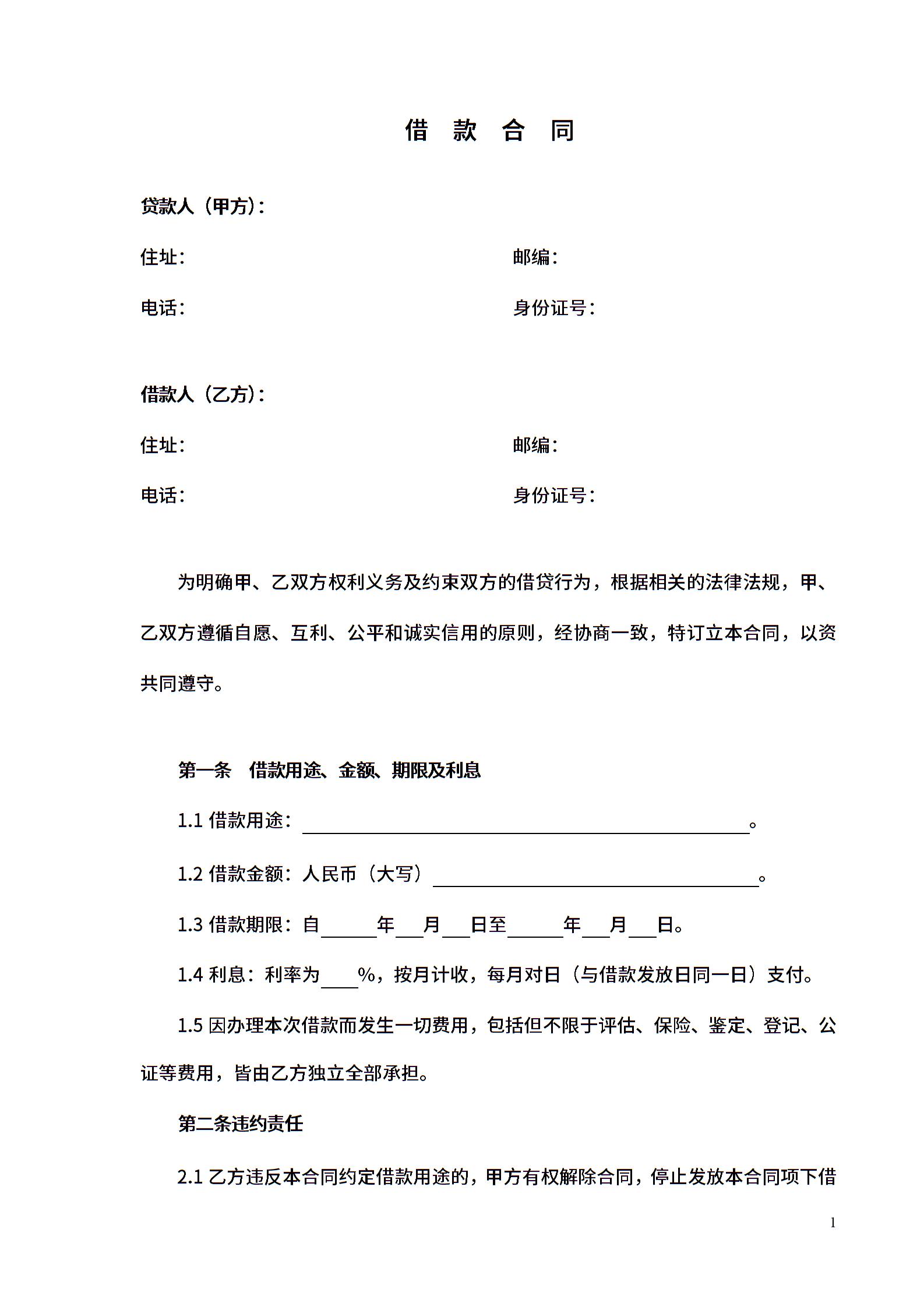 无抵押借款合同模板
