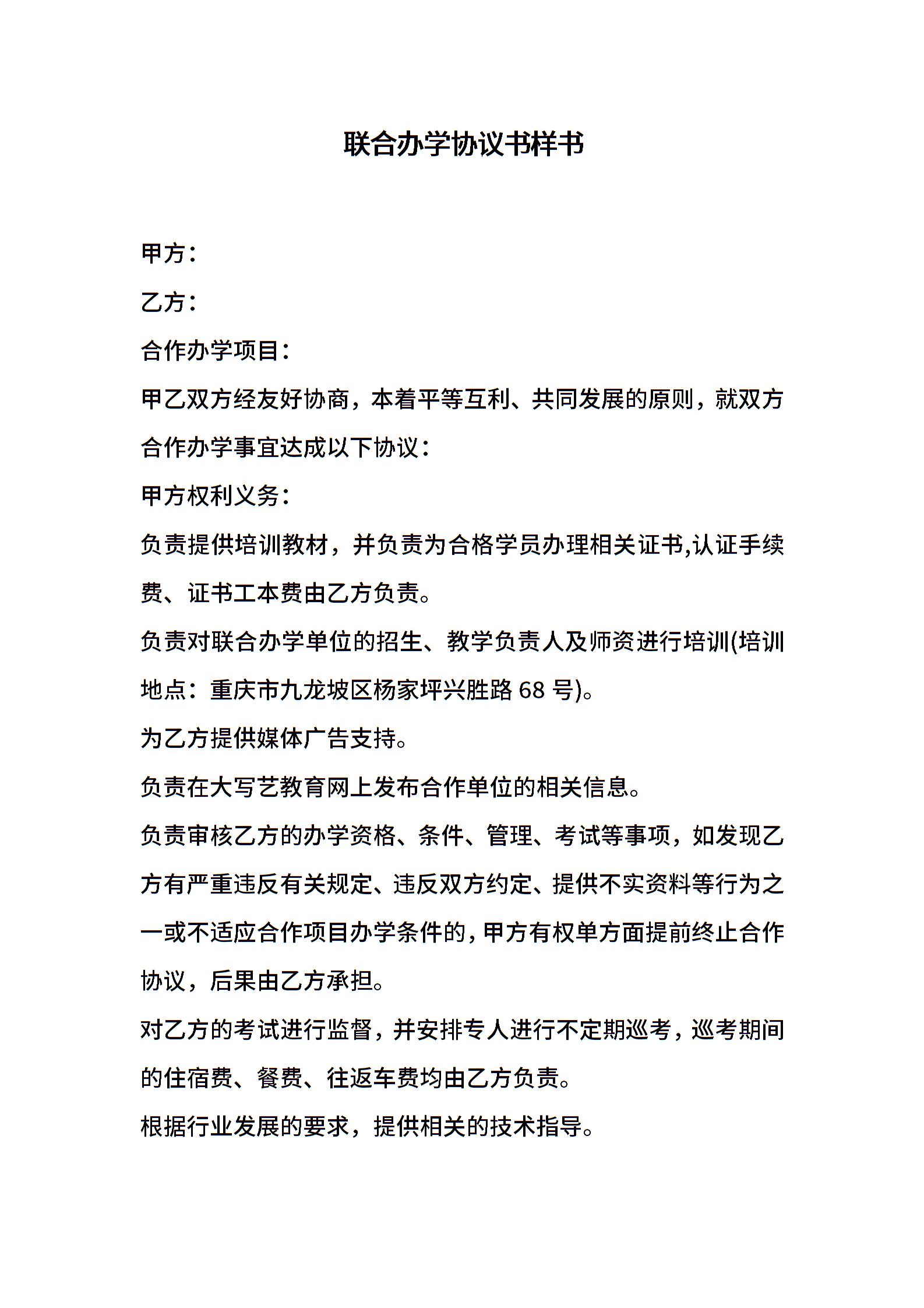 当前位置:量子办公 > 合同模板 > 合作合同 >