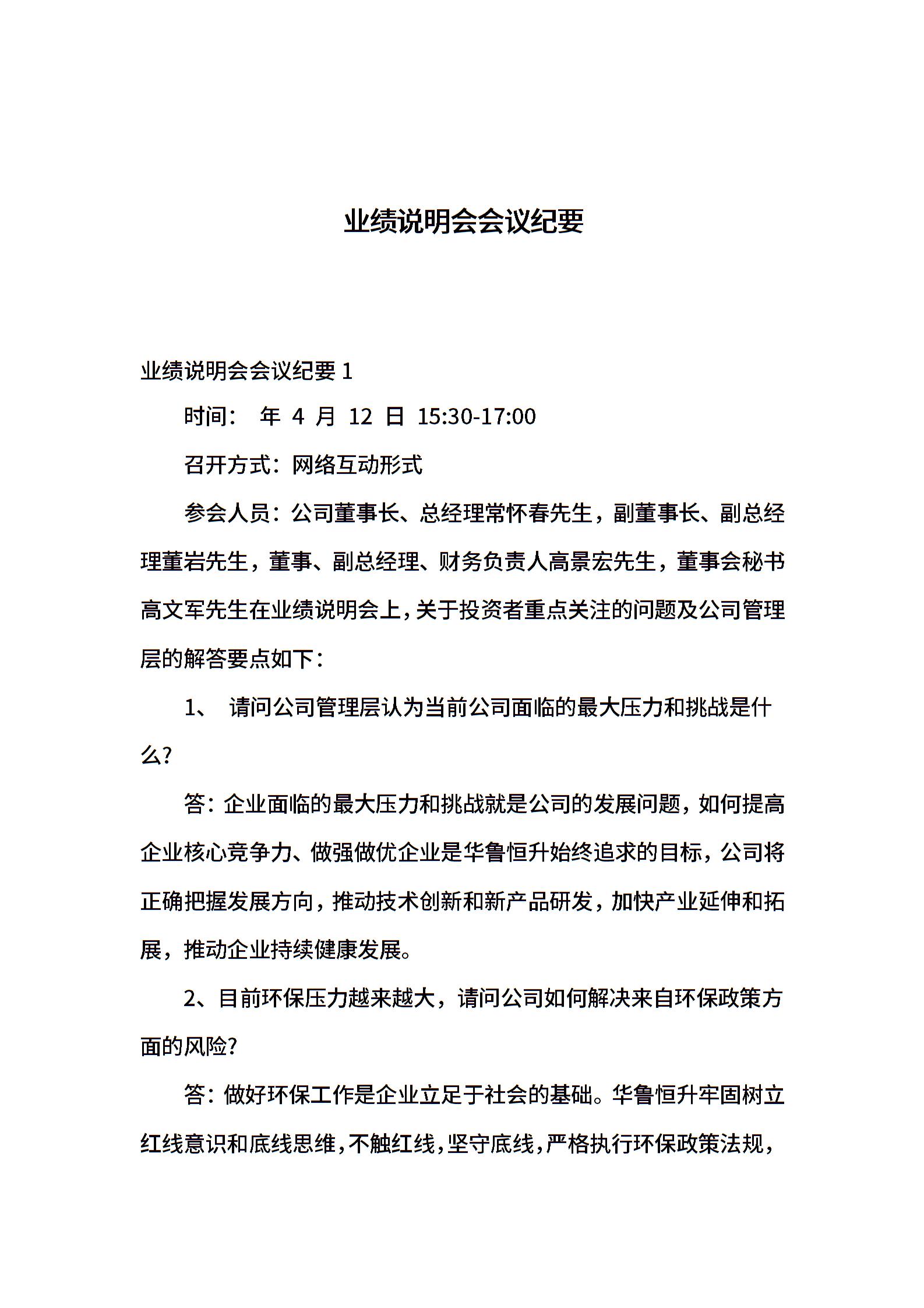业绩说明会会议纪要