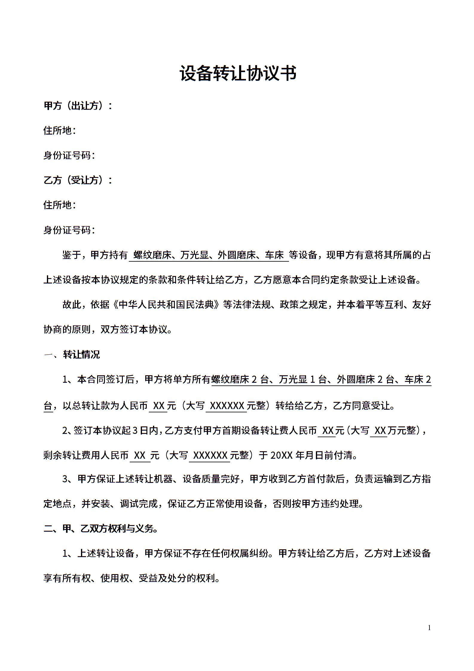 当前位置:量子办公 > 合同模板 > 转让合同 >