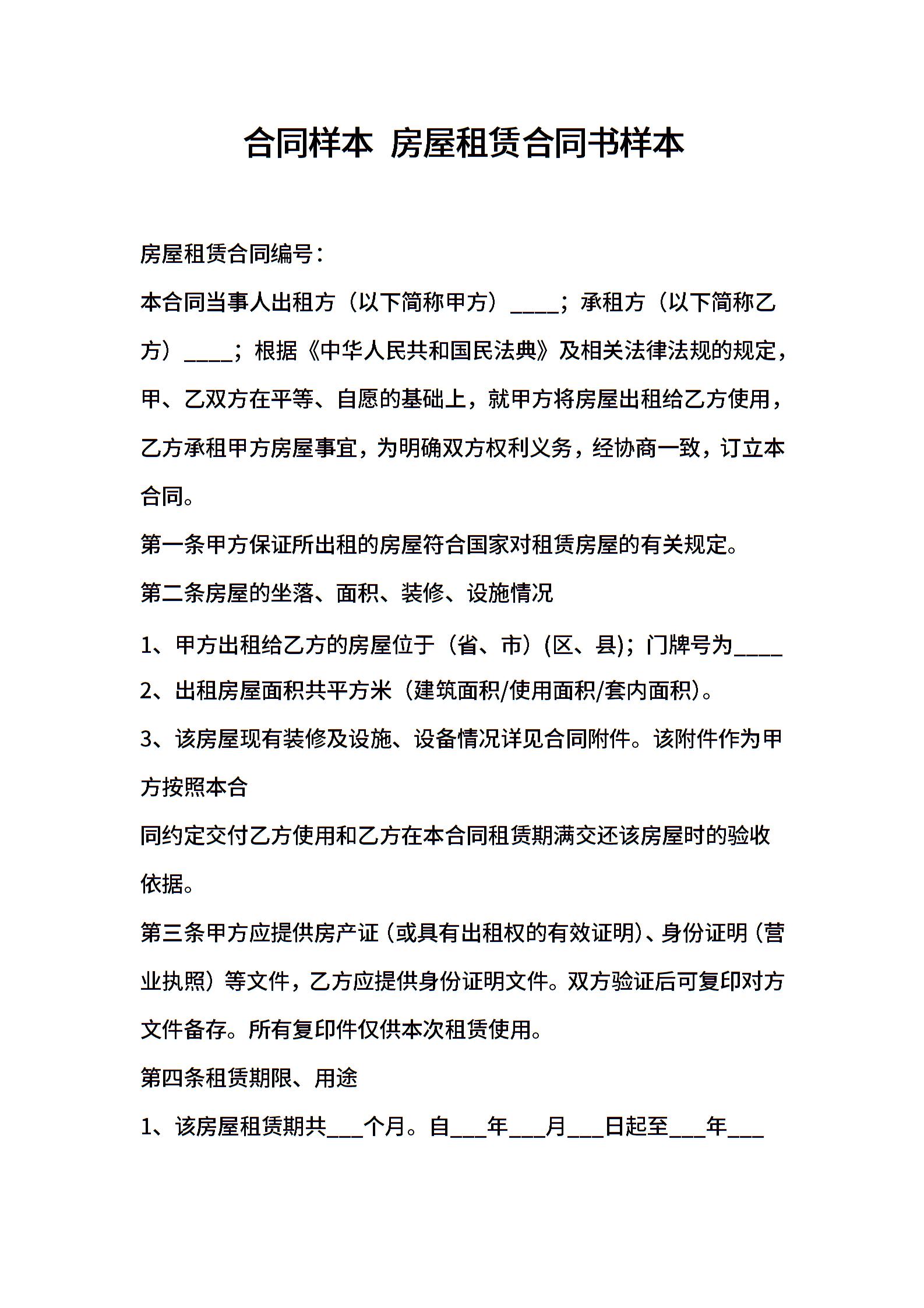 房屋租赁合同书样本 (2)