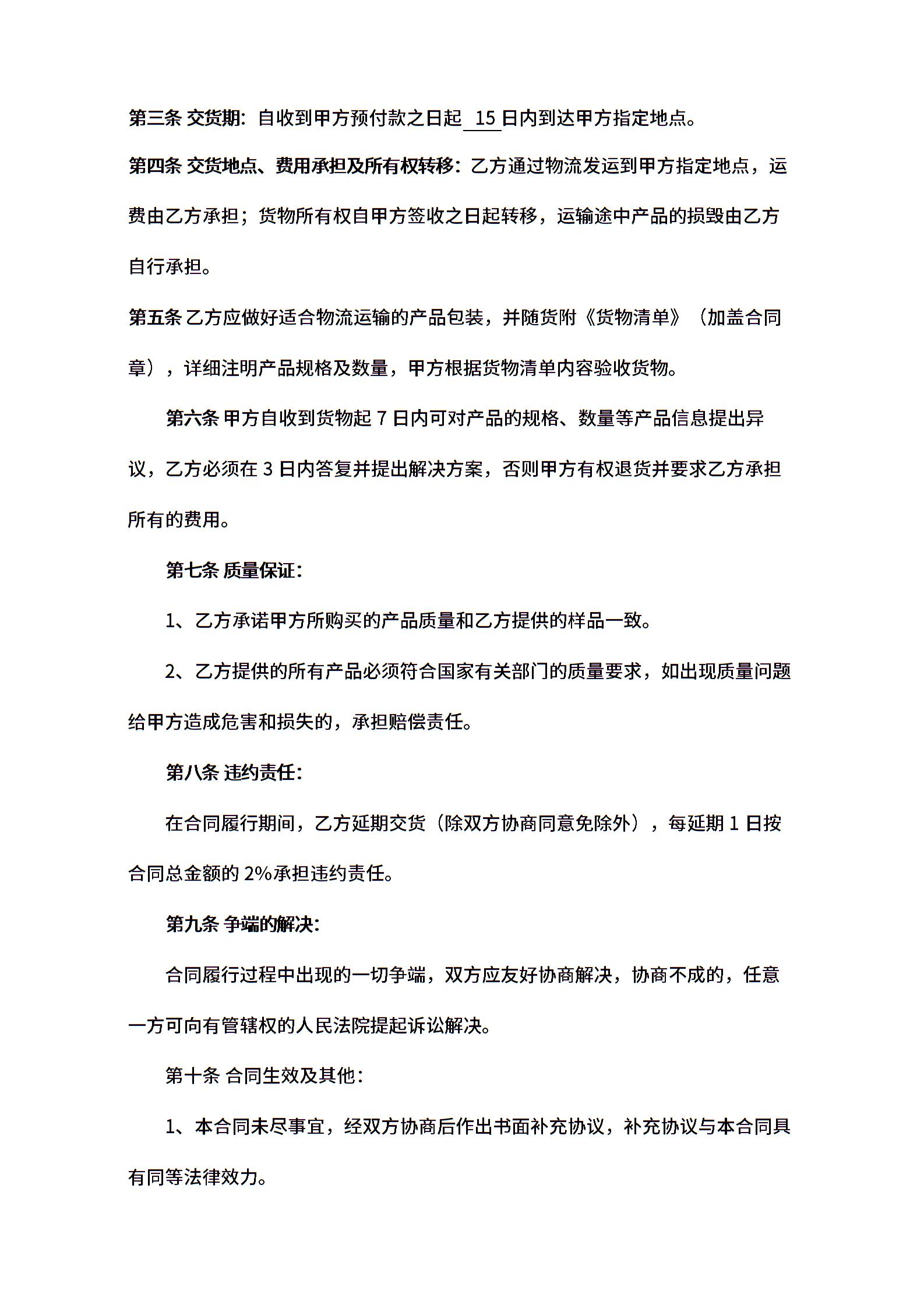 当前位置:量子办公 > 合同模板 > 购销合同 >