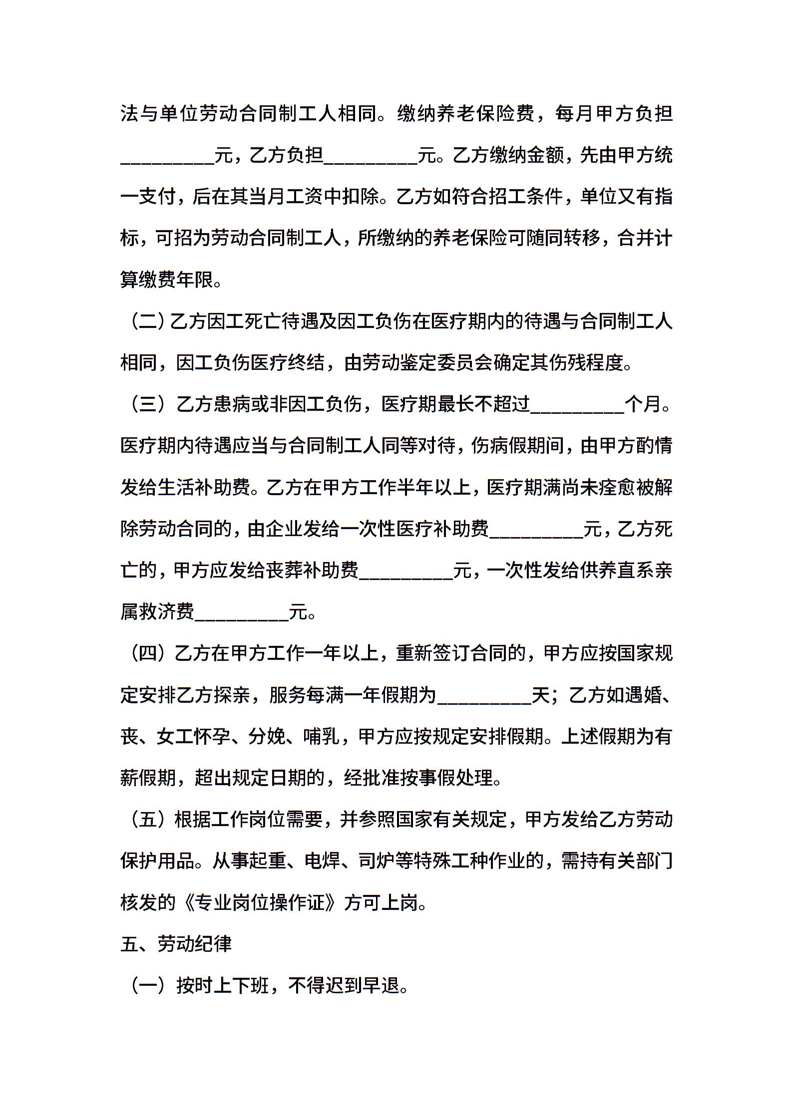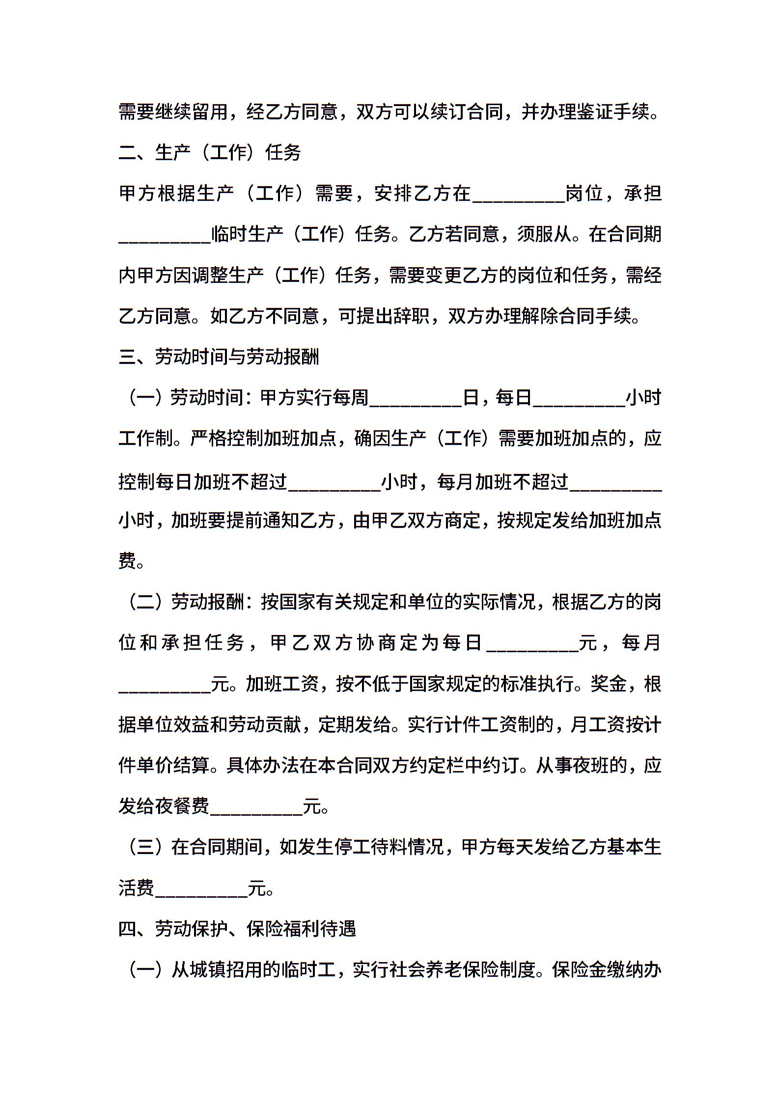 • 分类 临时用工合同