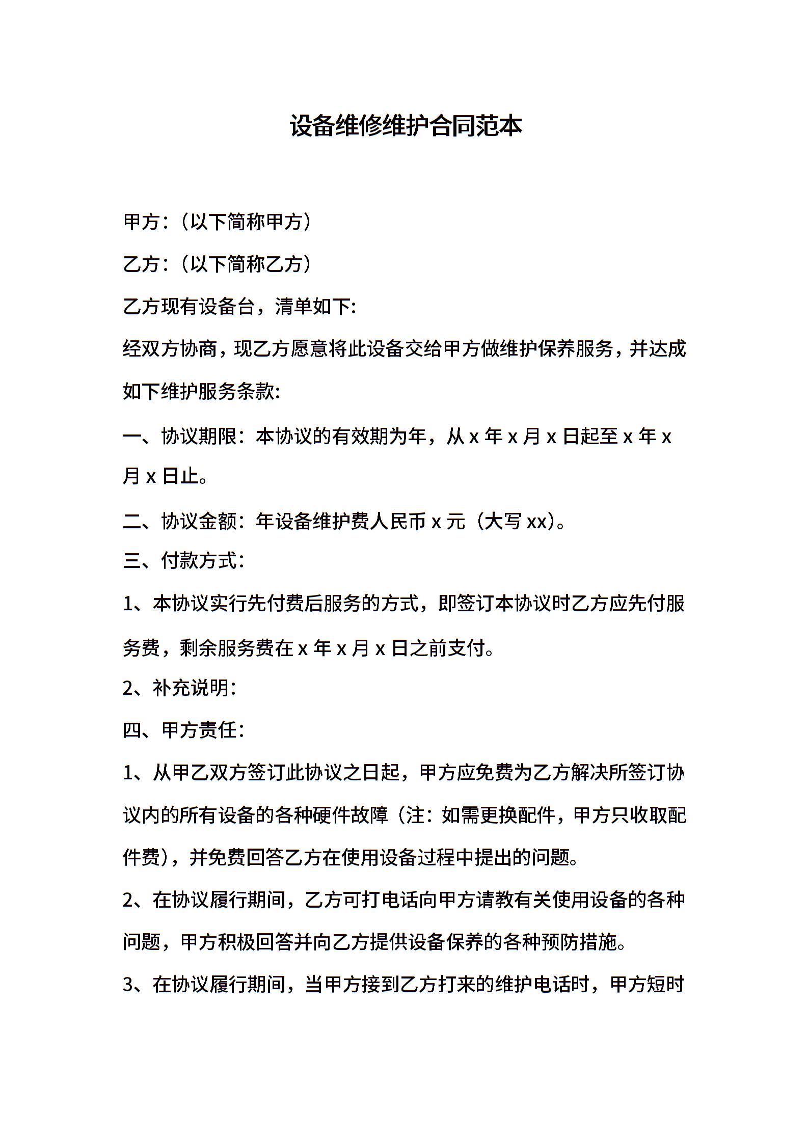 当前位置:量子办公 > 合同模板 > 维修合同 >