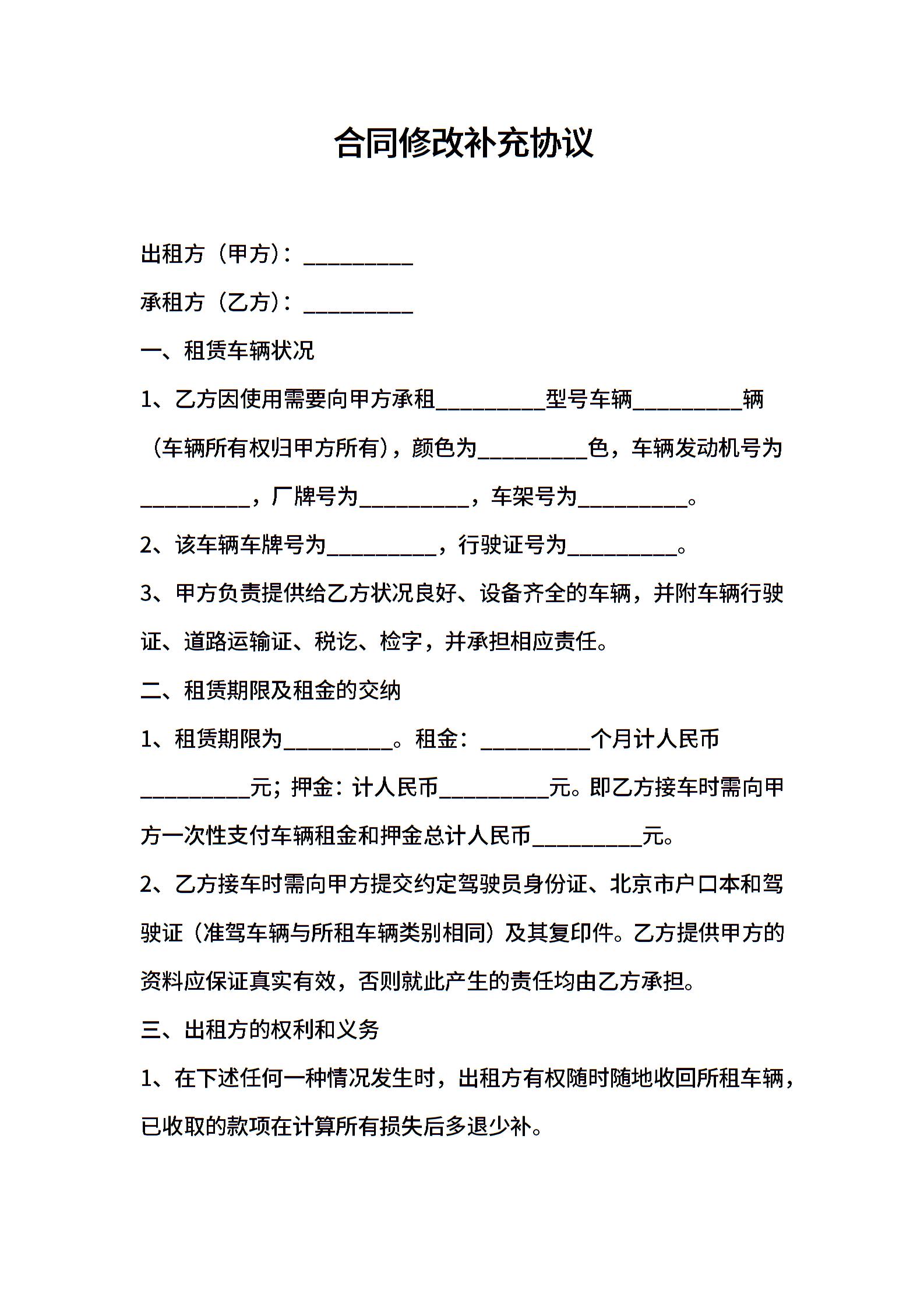 合同修改补充协议