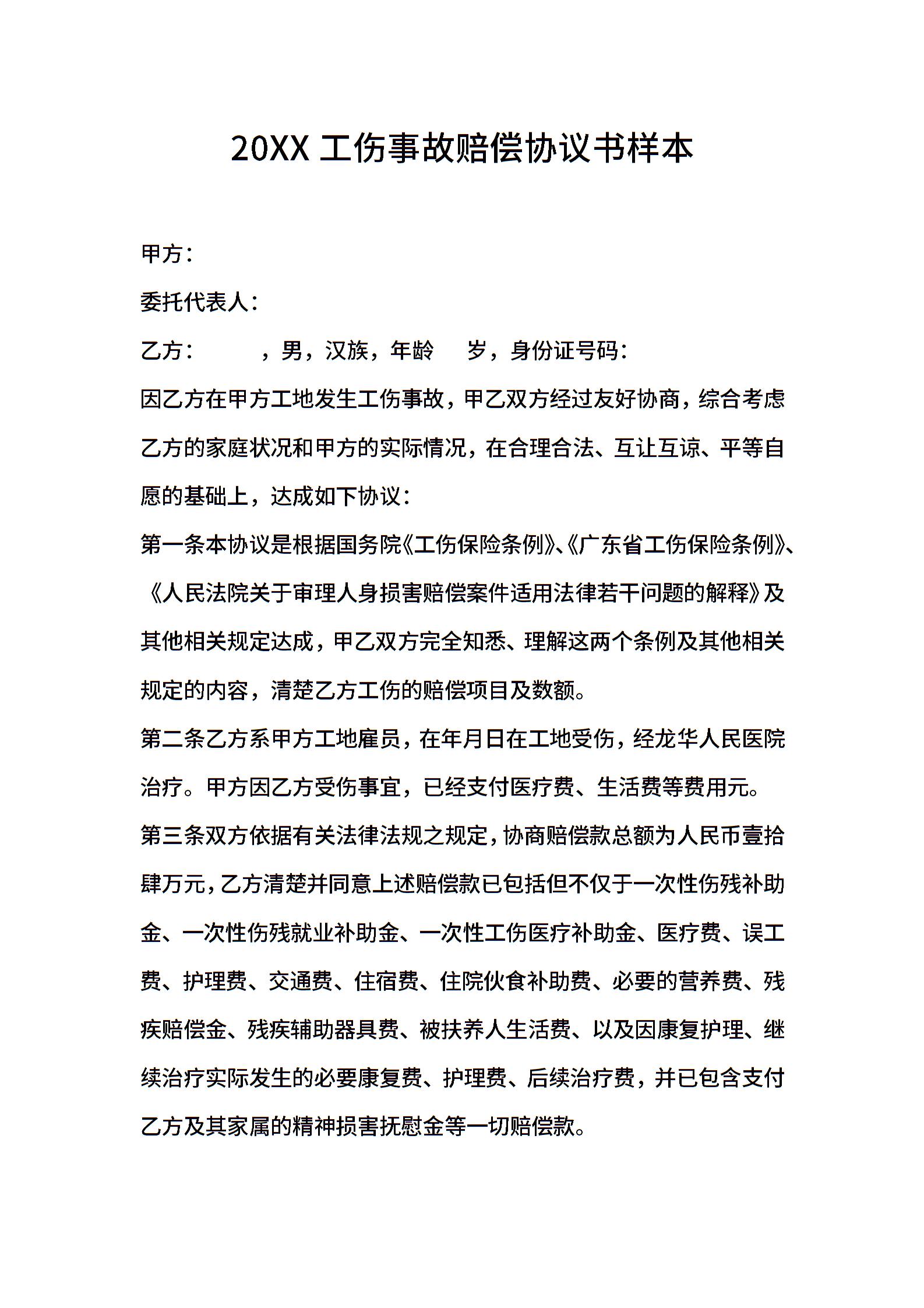 2021工伤事故赔偿协议书样本