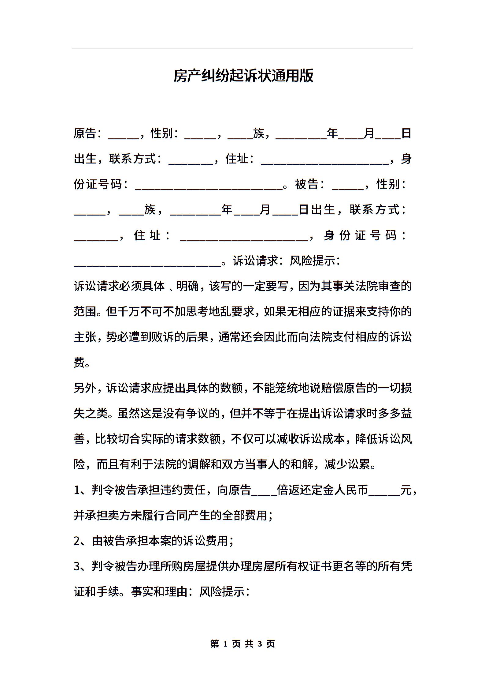 当前位置:量子办公 > 合同模板 > 起诉状 >