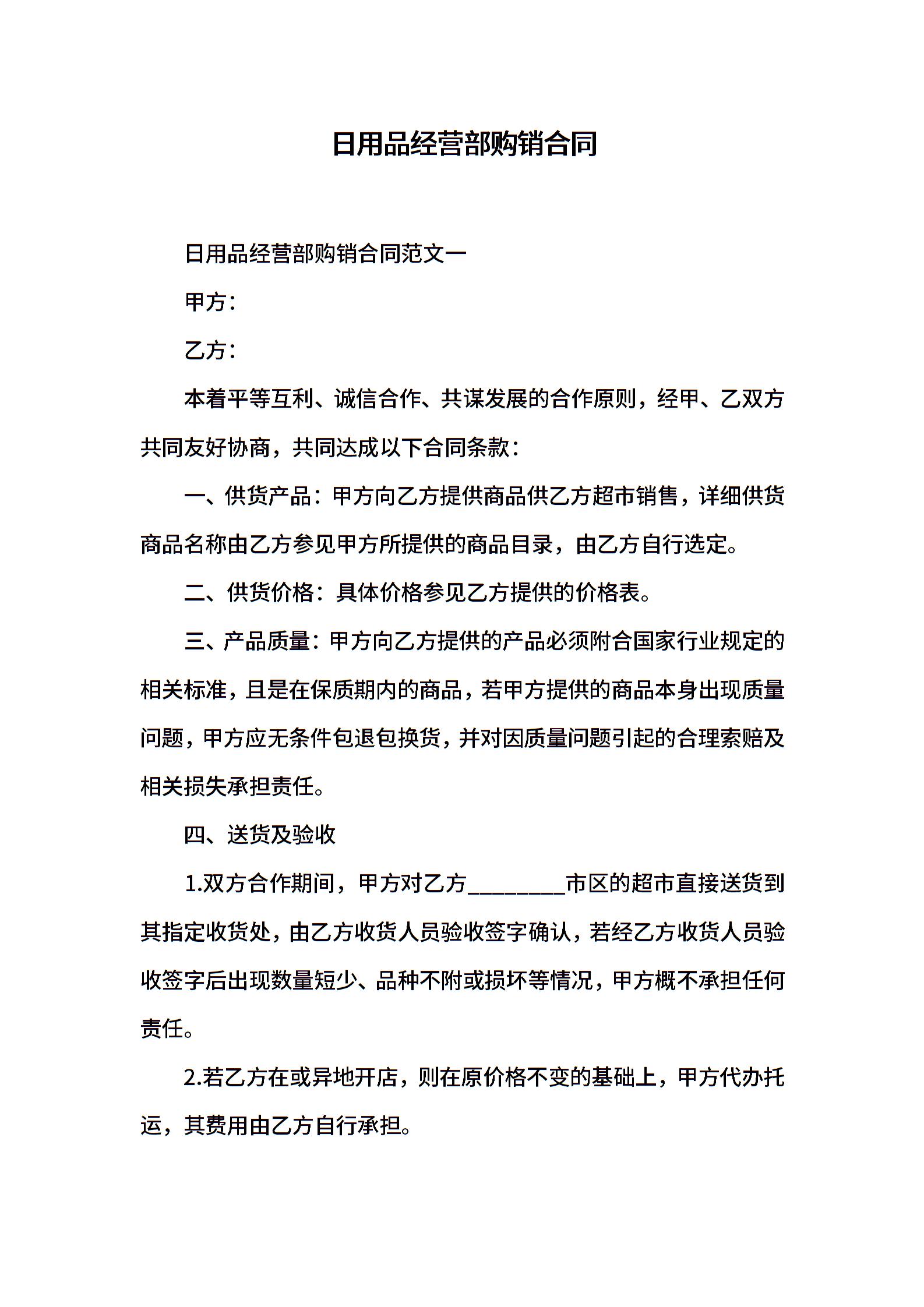 日用品经营部购销合同