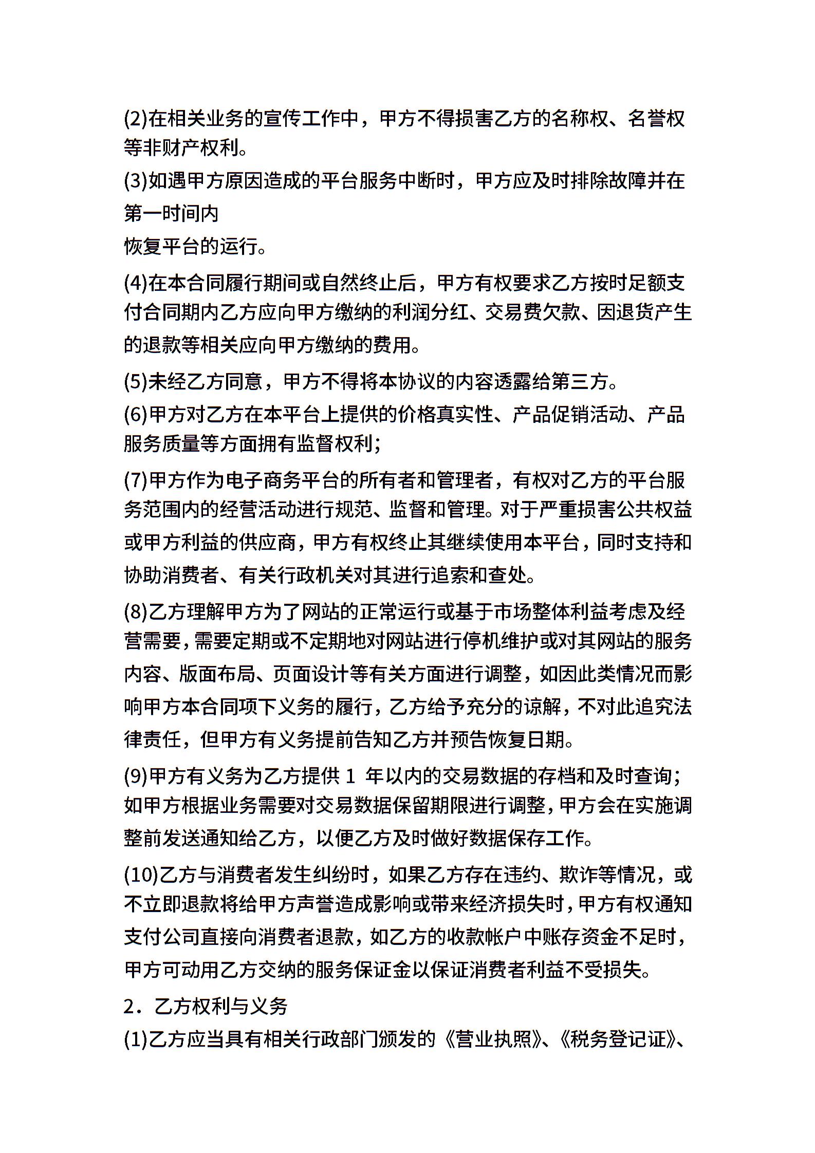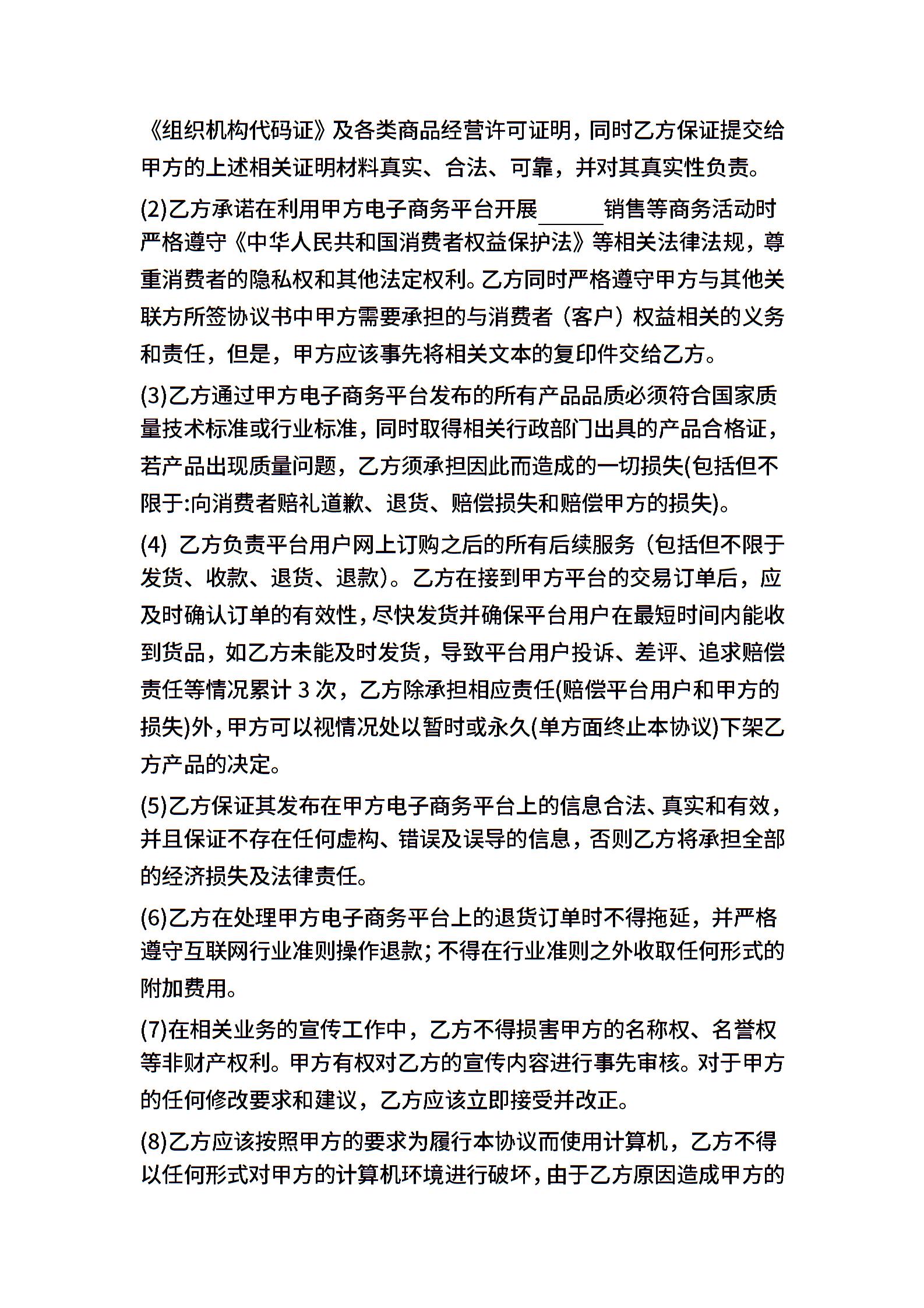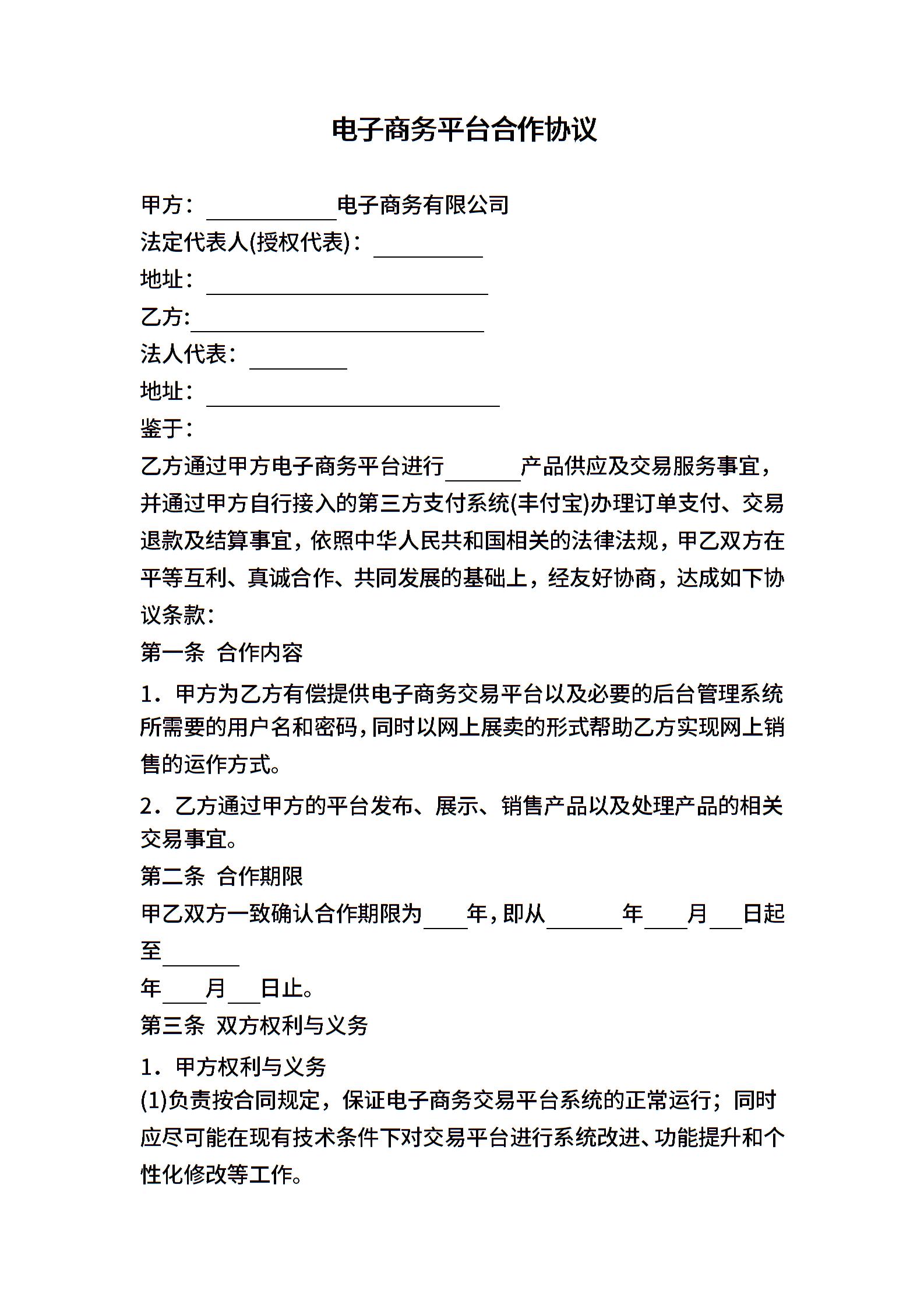 电子商务平台合作协议
