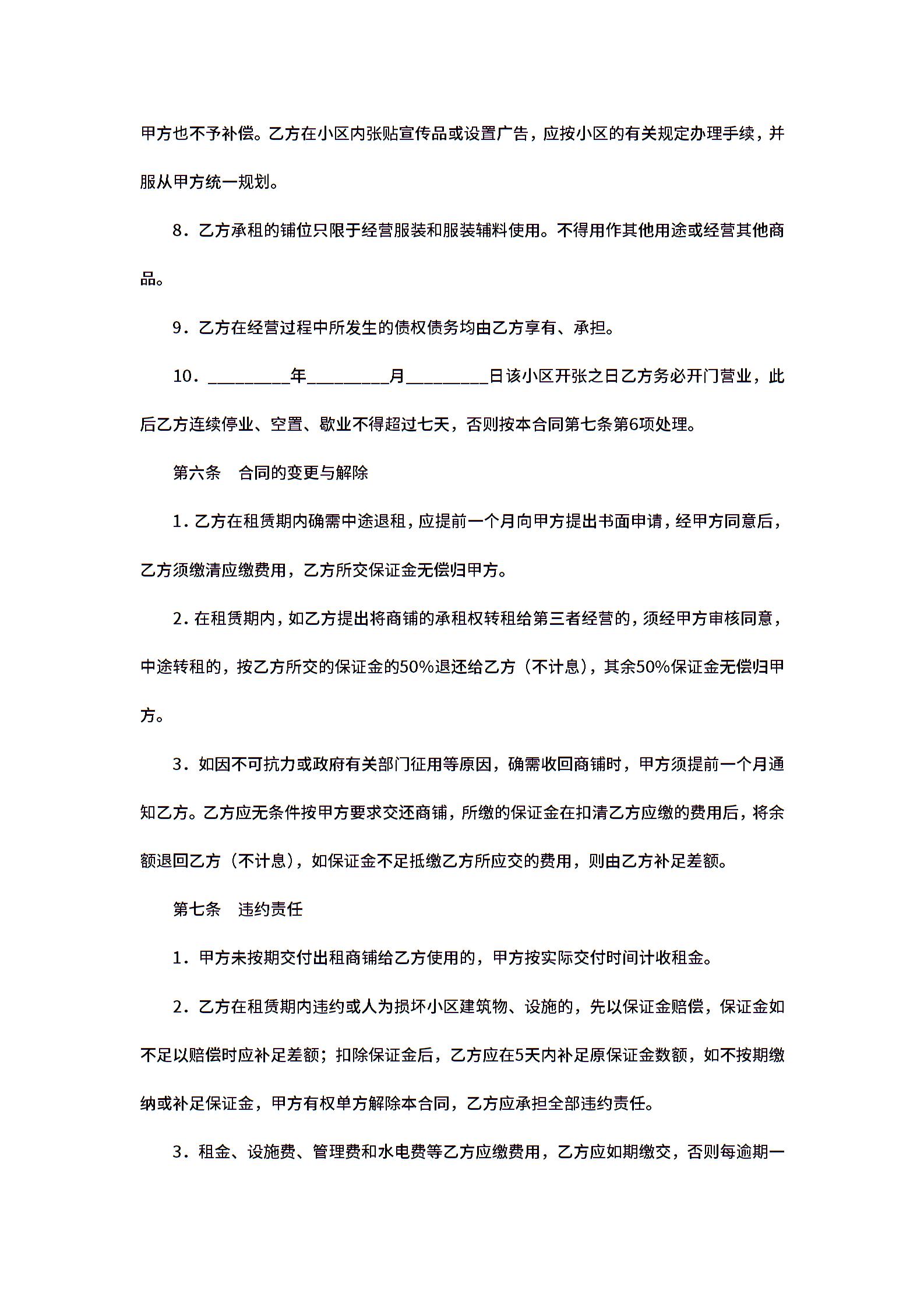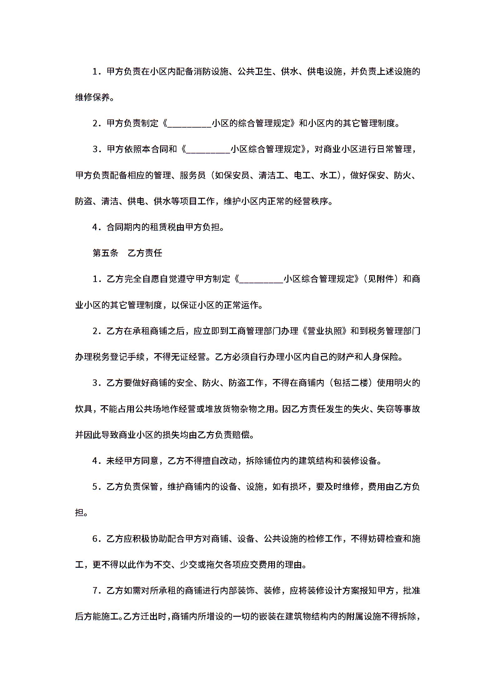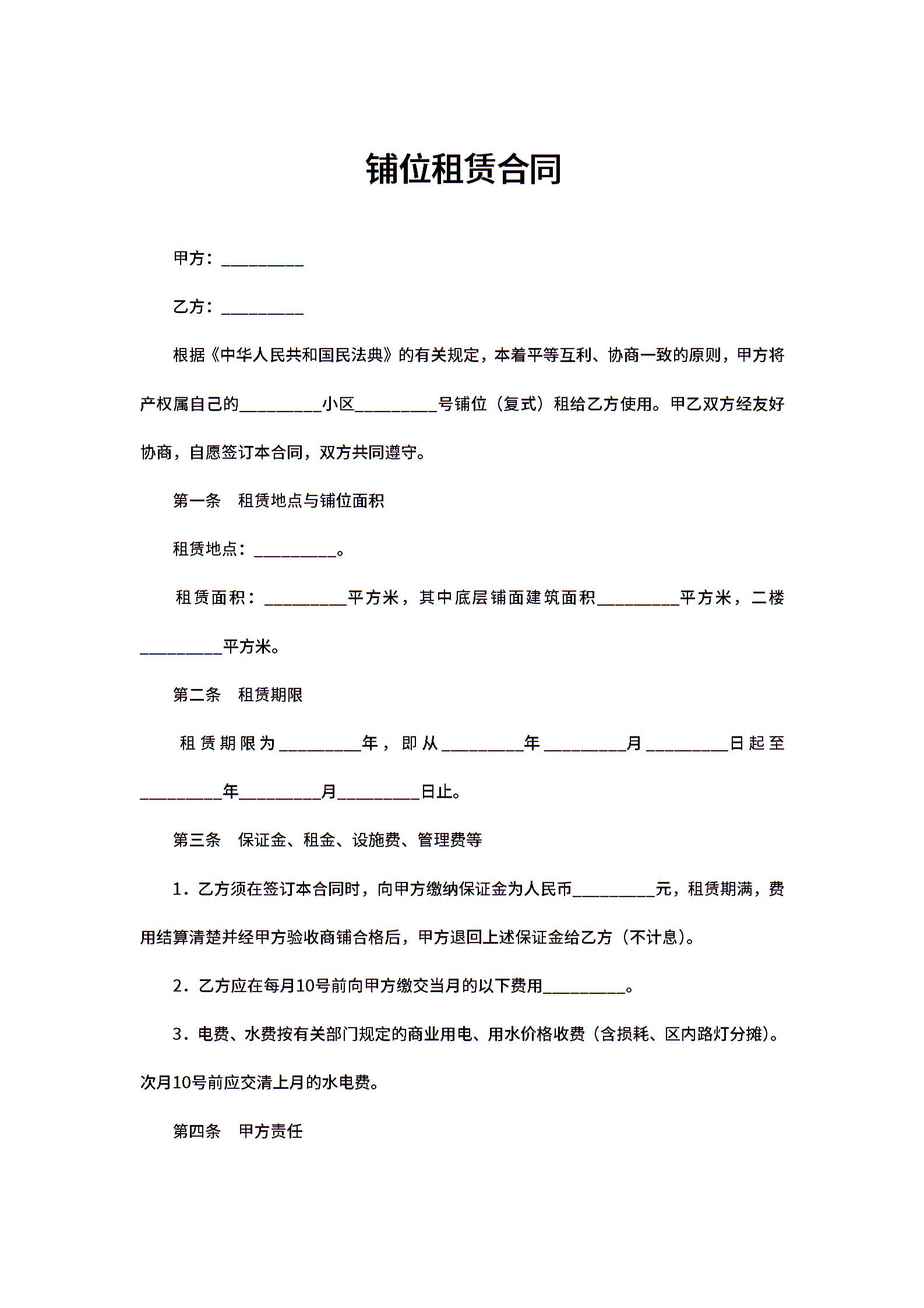铺位租赁合同范本下载