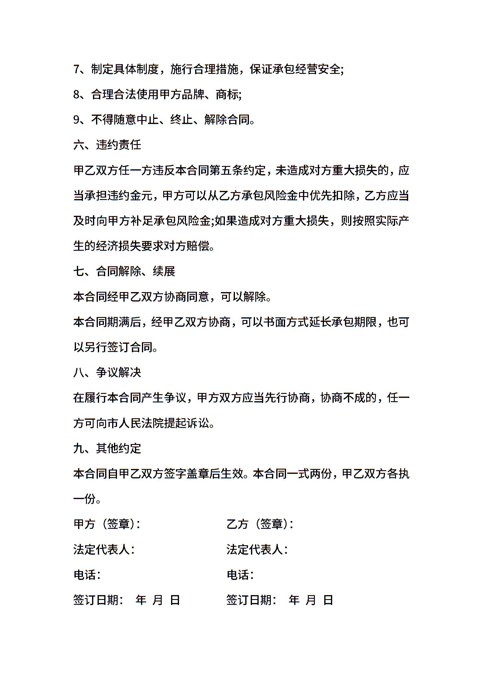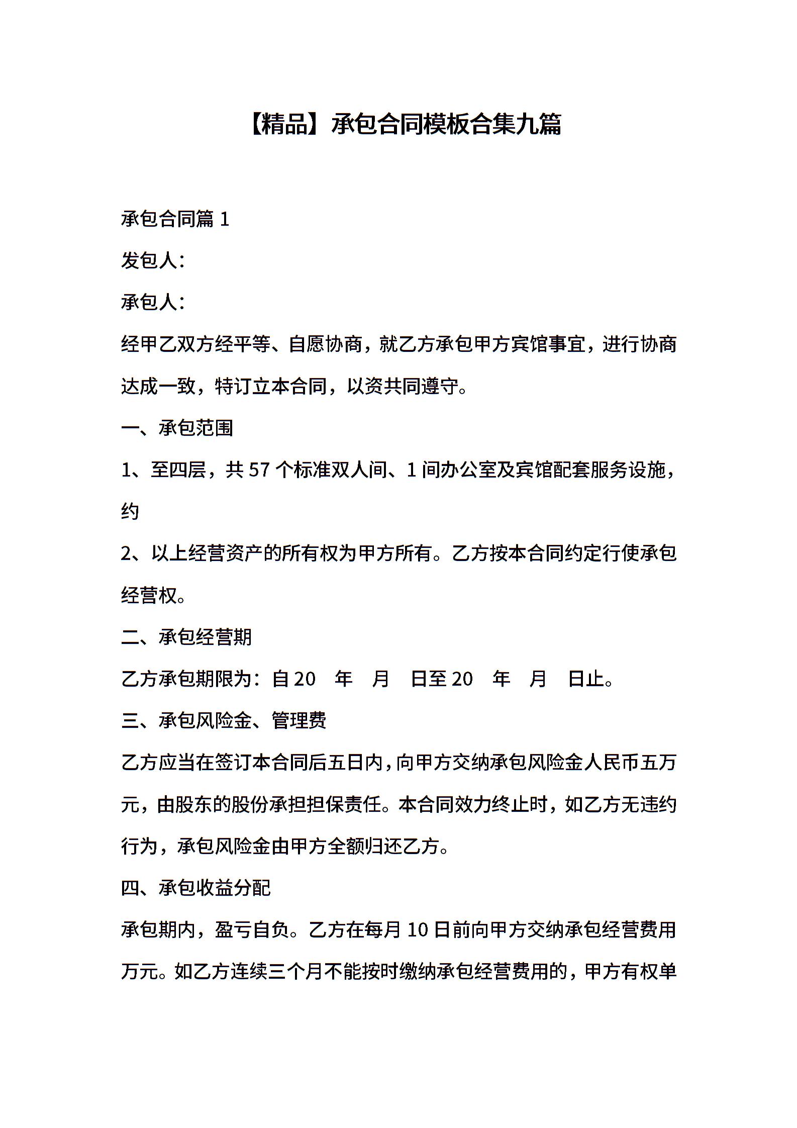 承包合同模板合集九篇