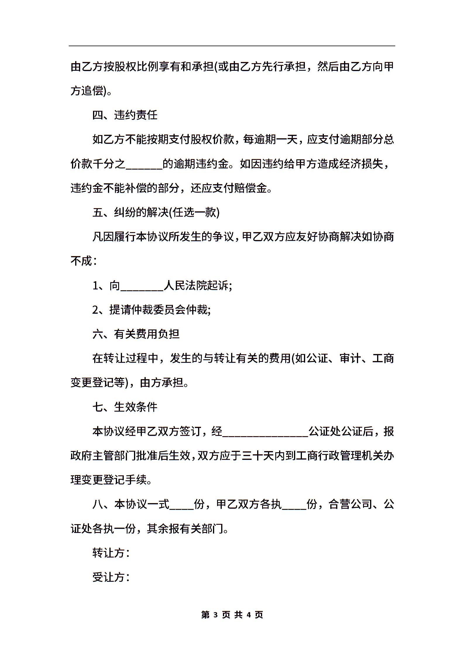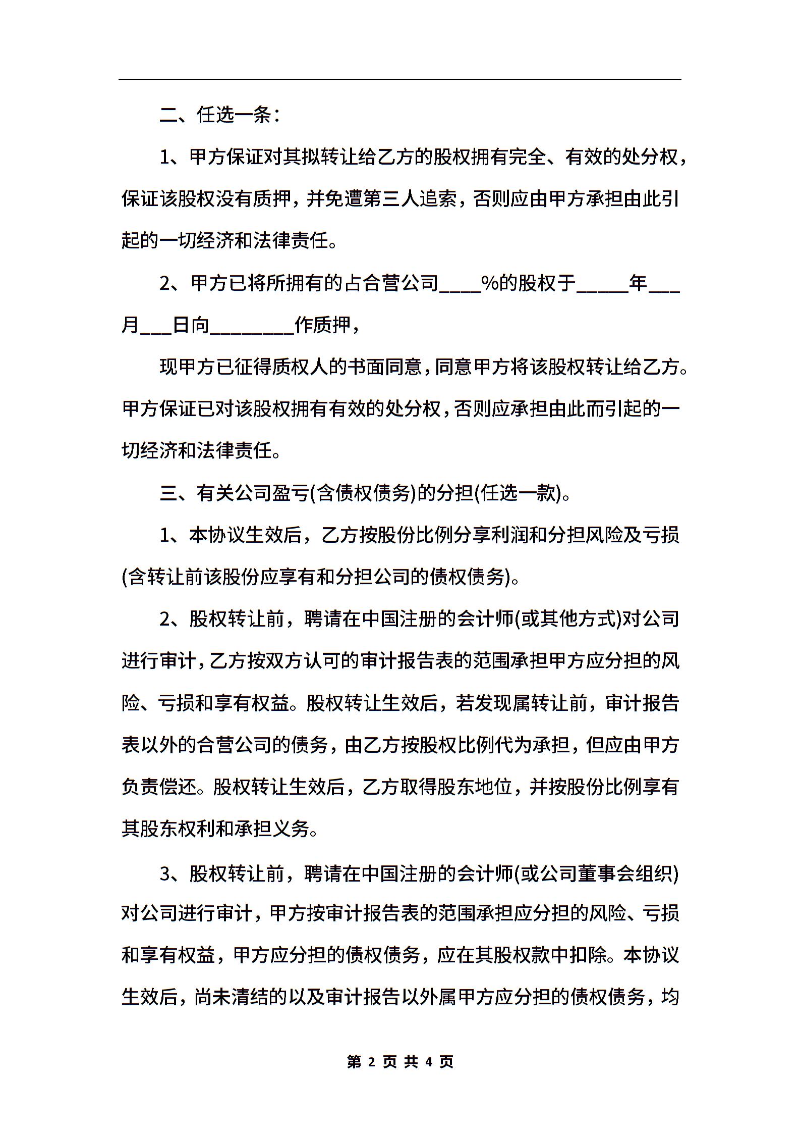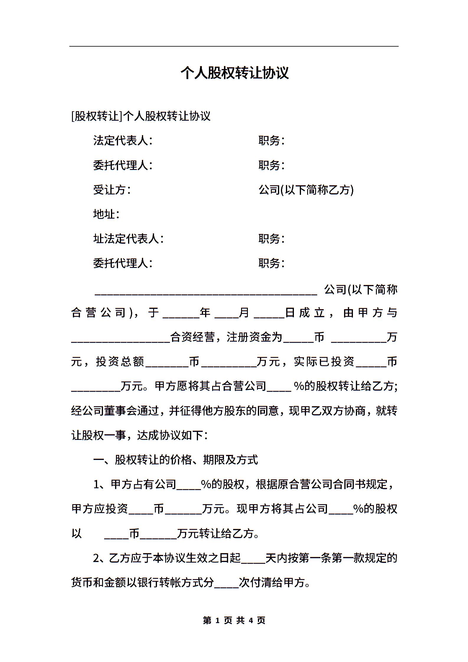 个人股权转让协议