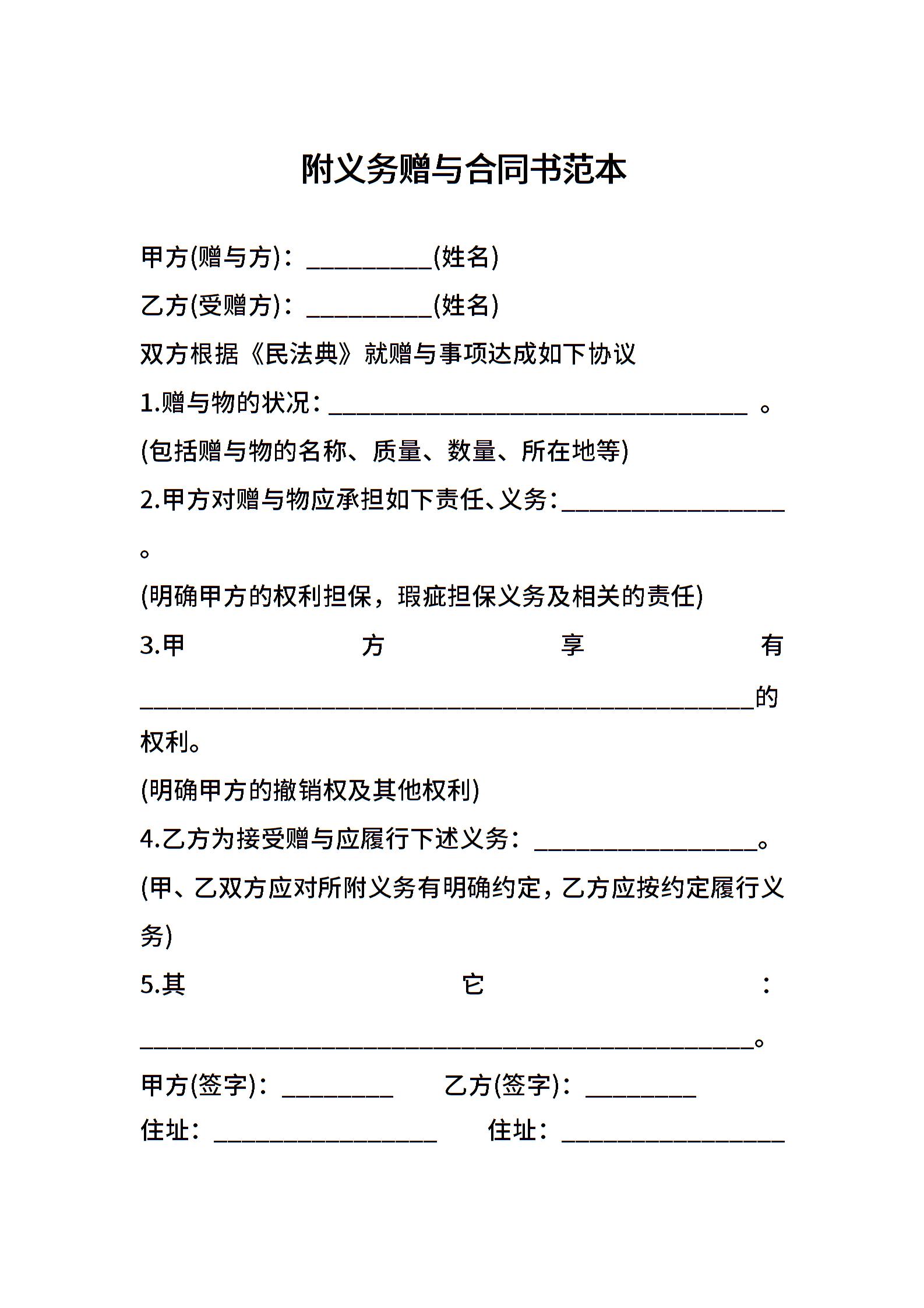 附义务赠与合同书范本