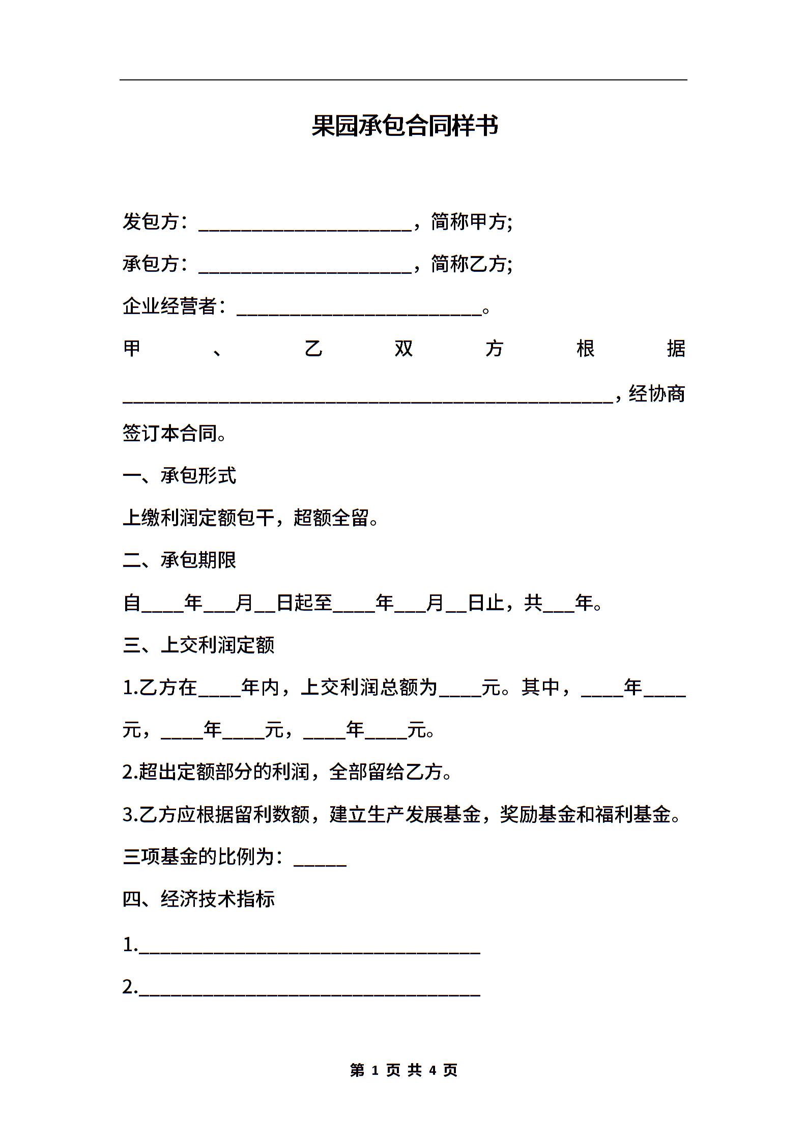果园承包合同样书
