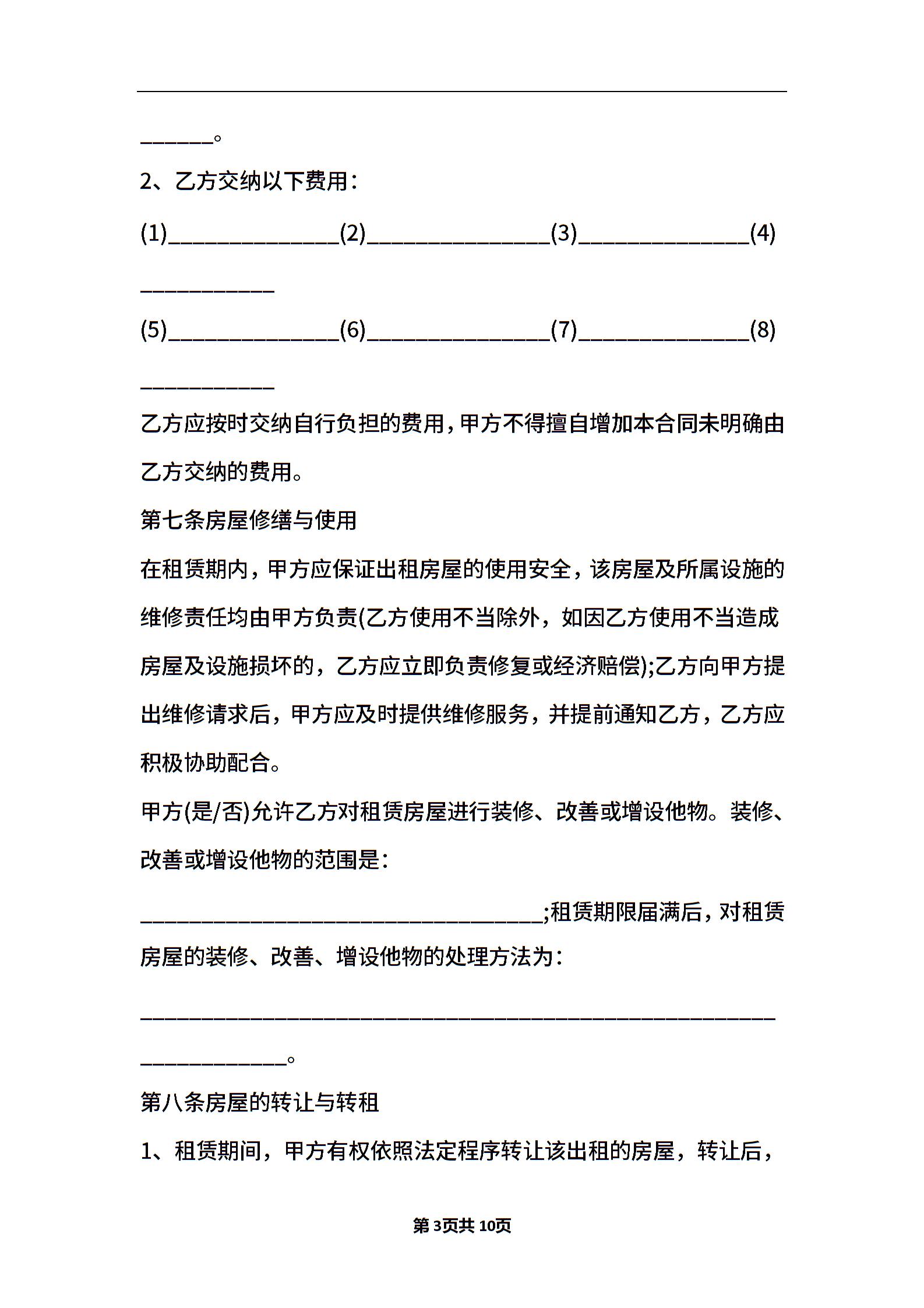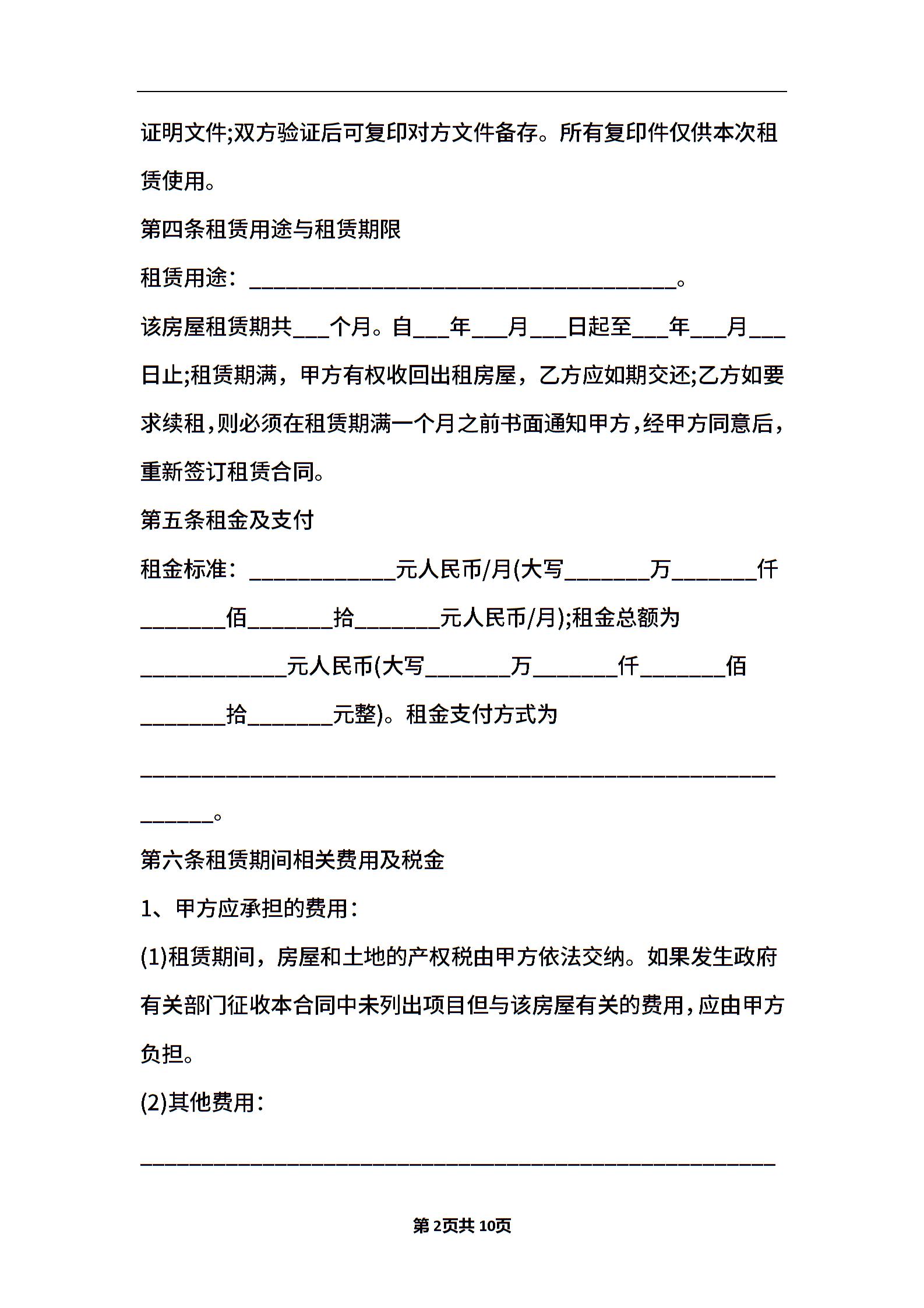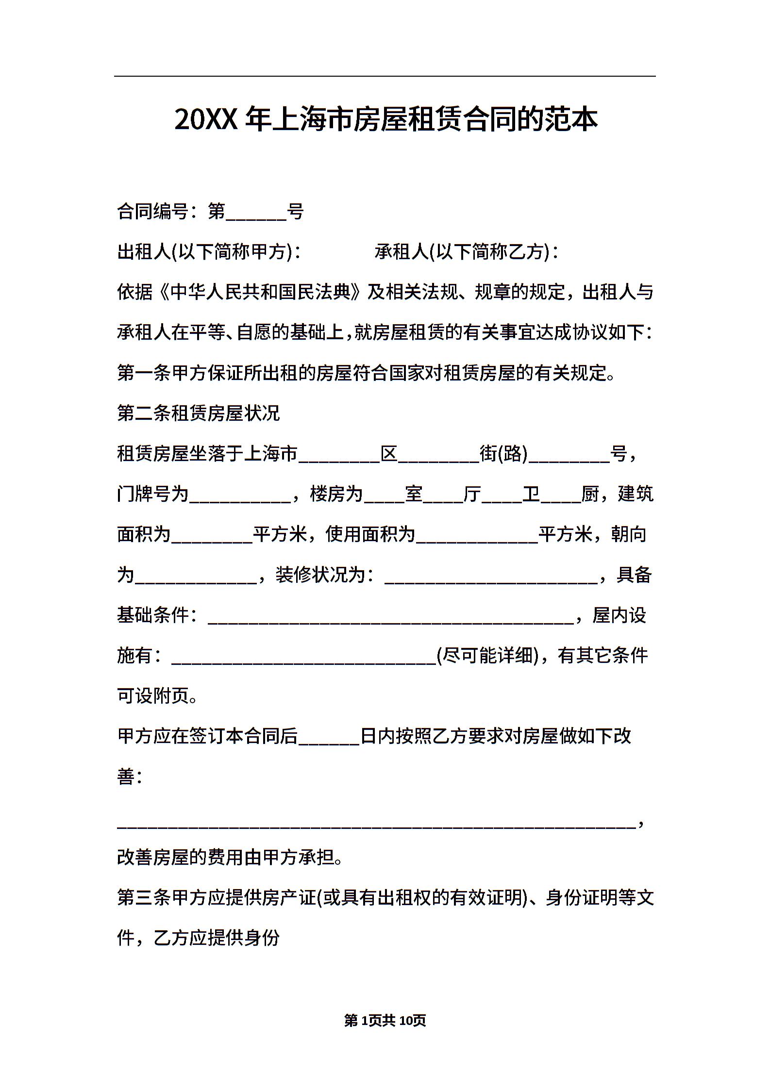 2021年上海市房屋租赁合同的范本