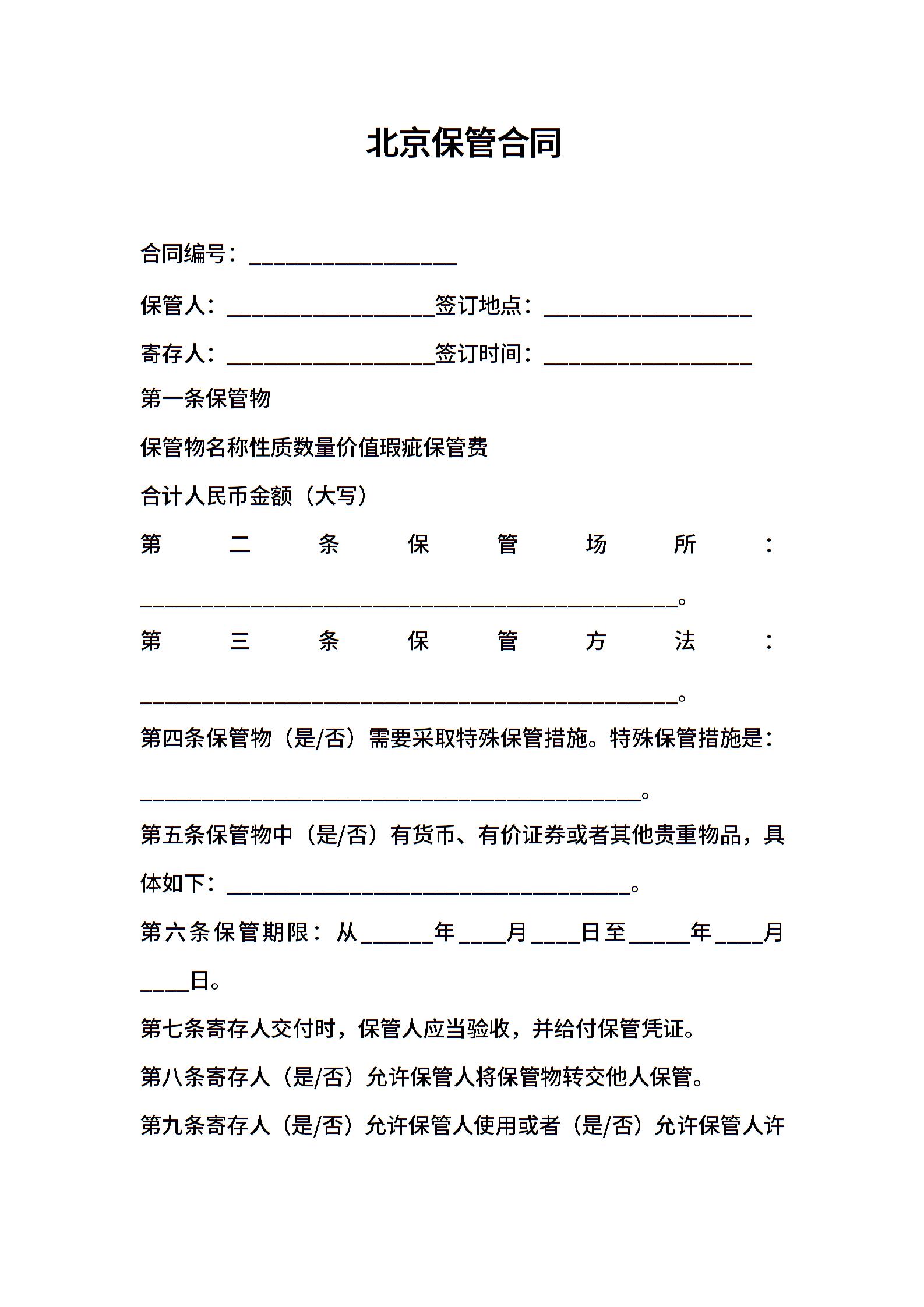 北京保管合同