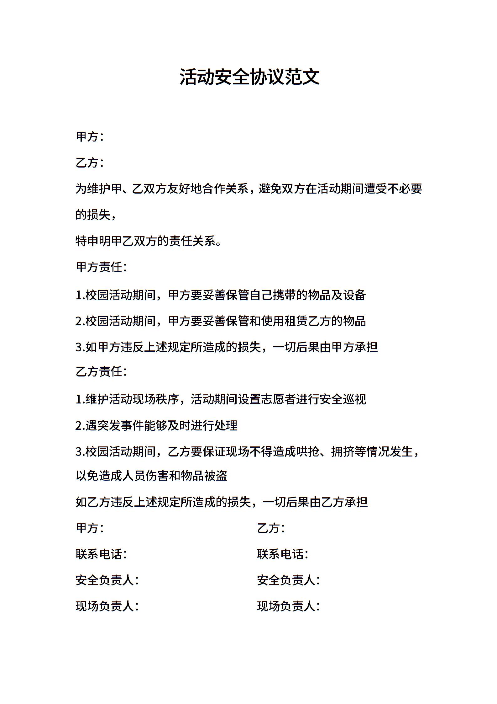 活动安全协议范文