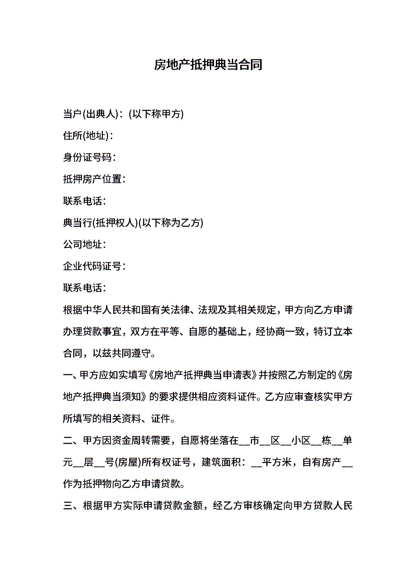 当前位置:量子办公 > 合同模板 > 典当合同 >
