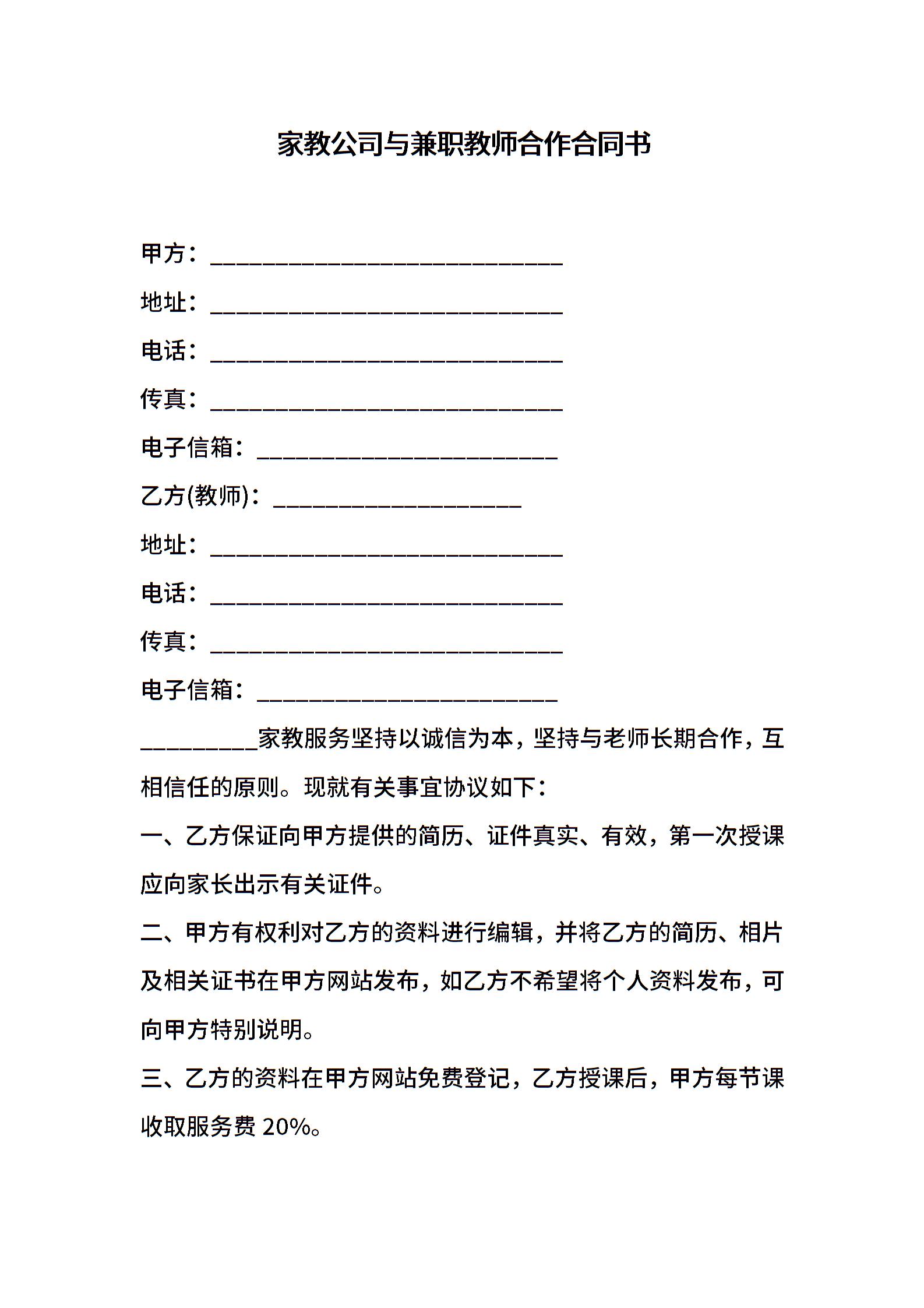 家教公司与兼职教师合作合同书