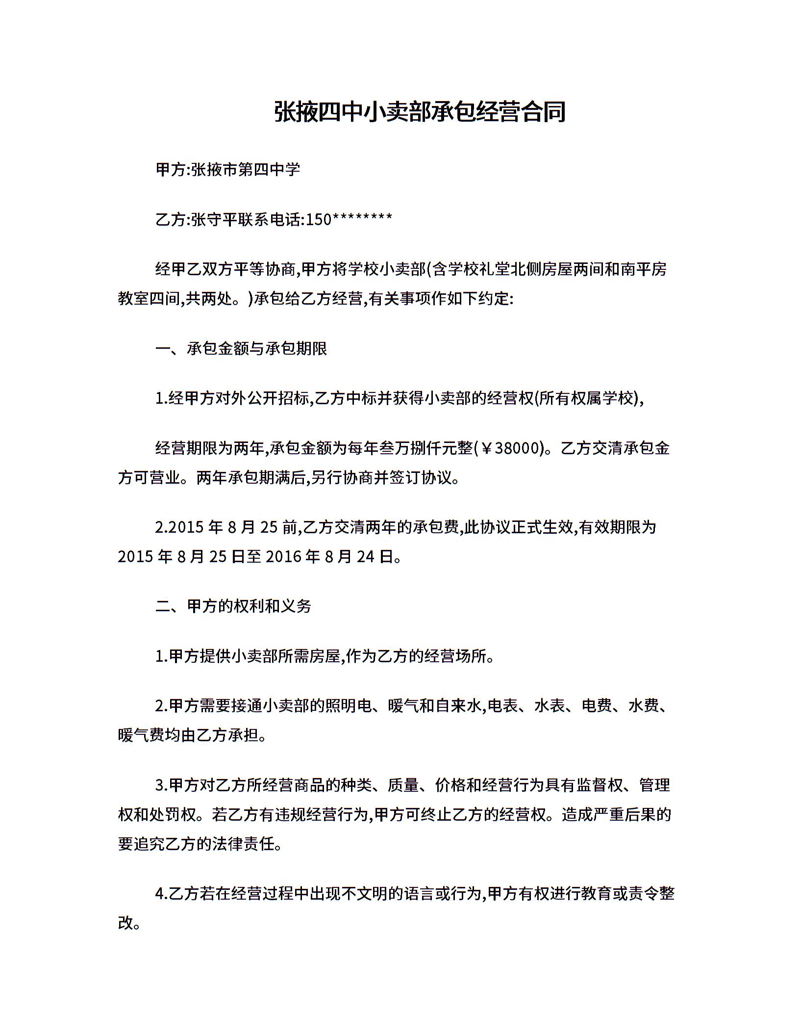 小卖部承包经营合同.doc