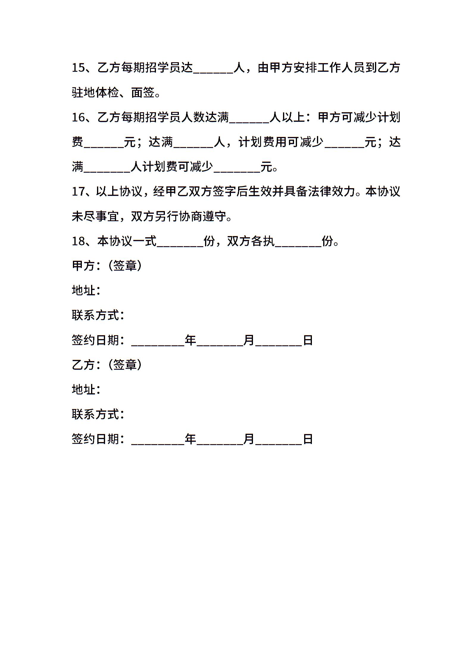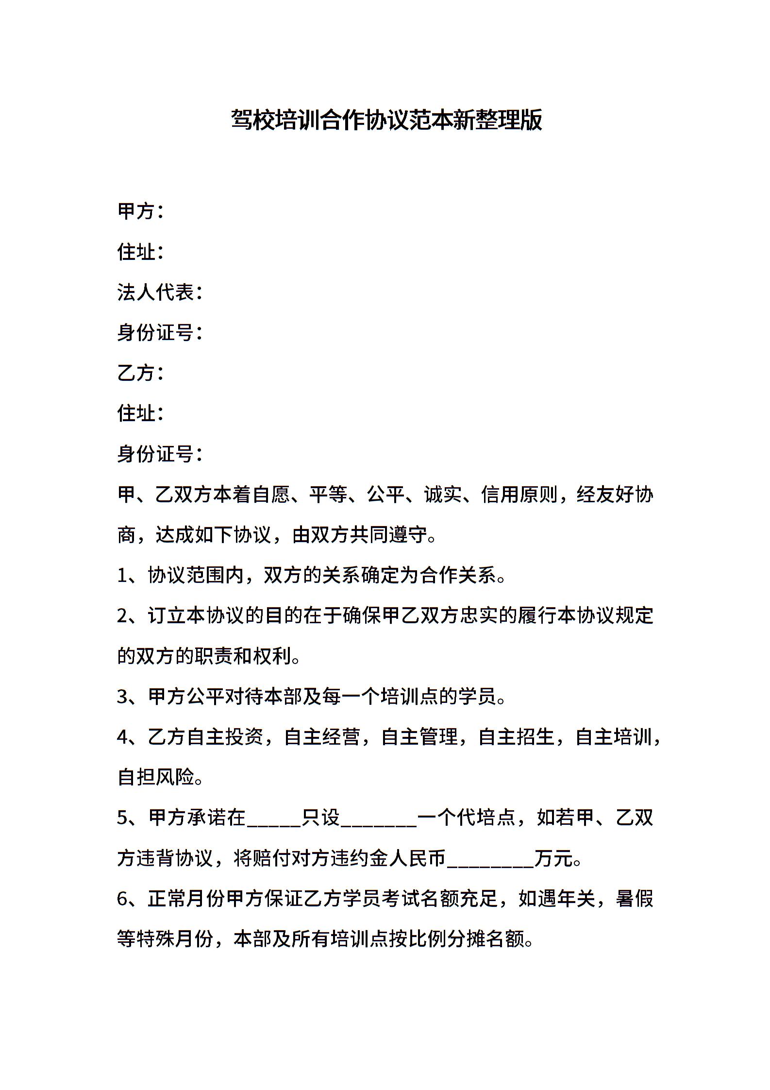 驾校培训合作协议范本新整理版