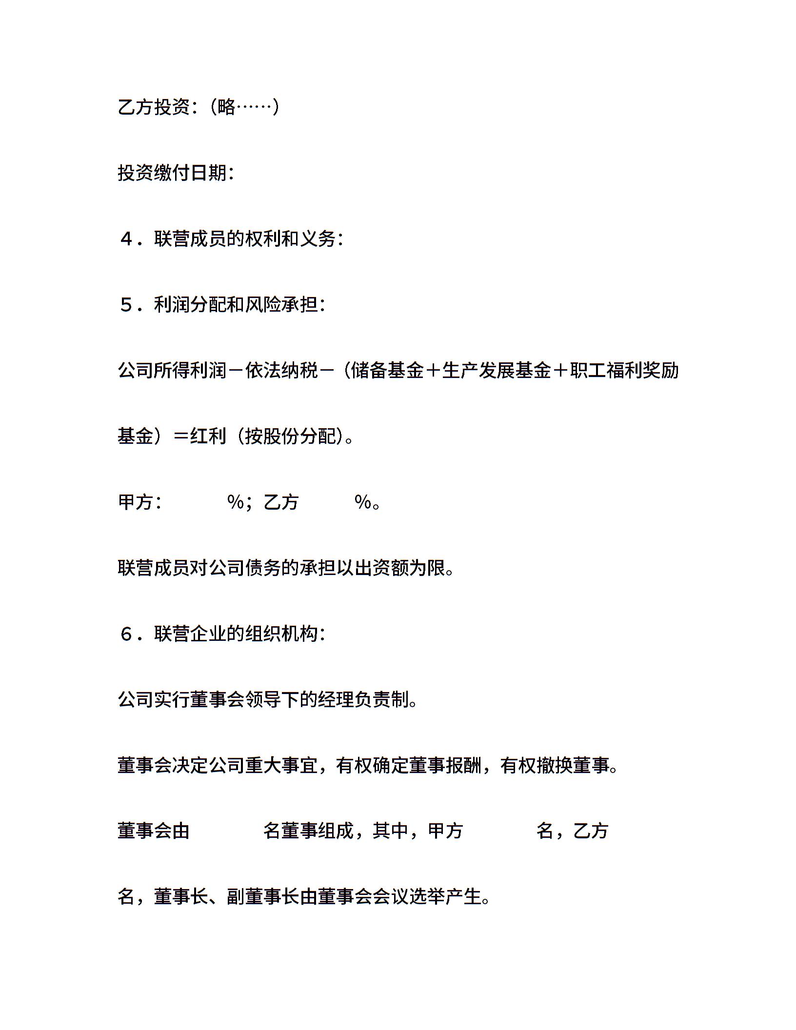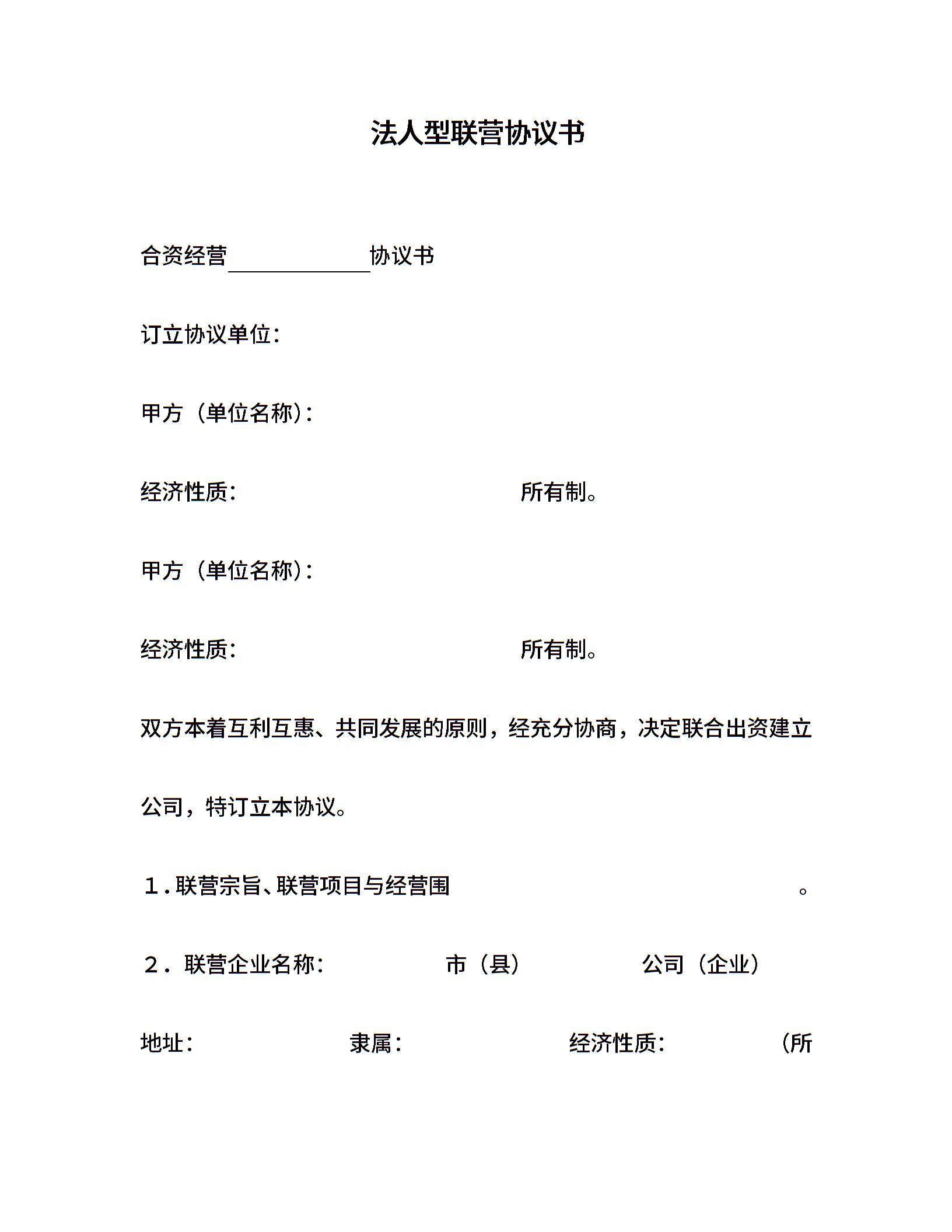 法人型联营协议书
