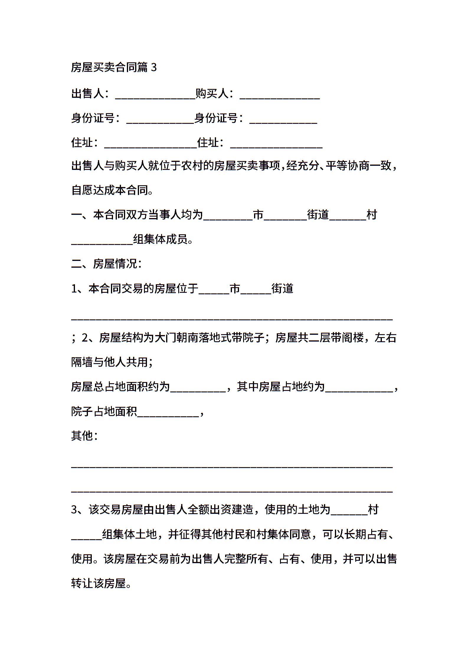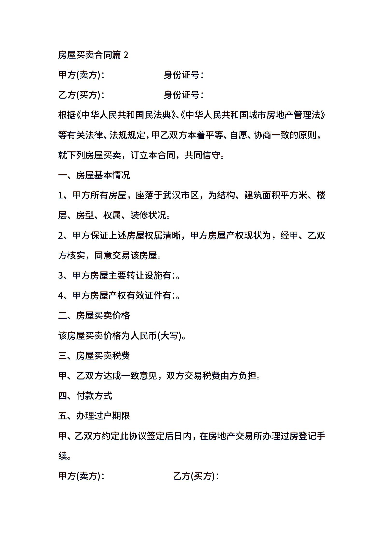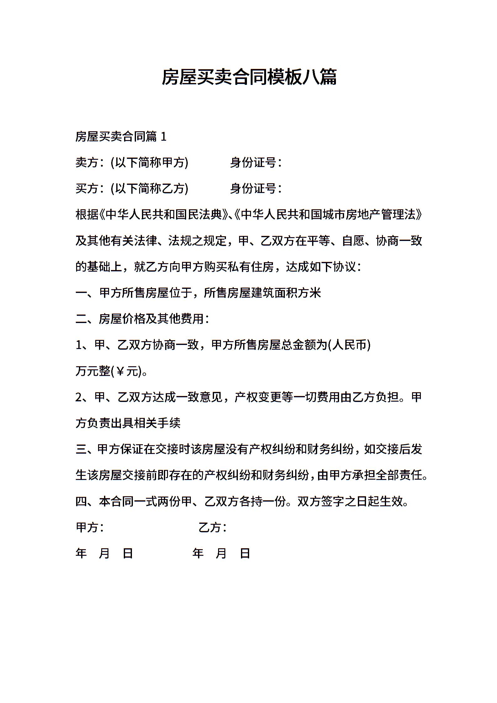 房屋买卖合同模板八篇